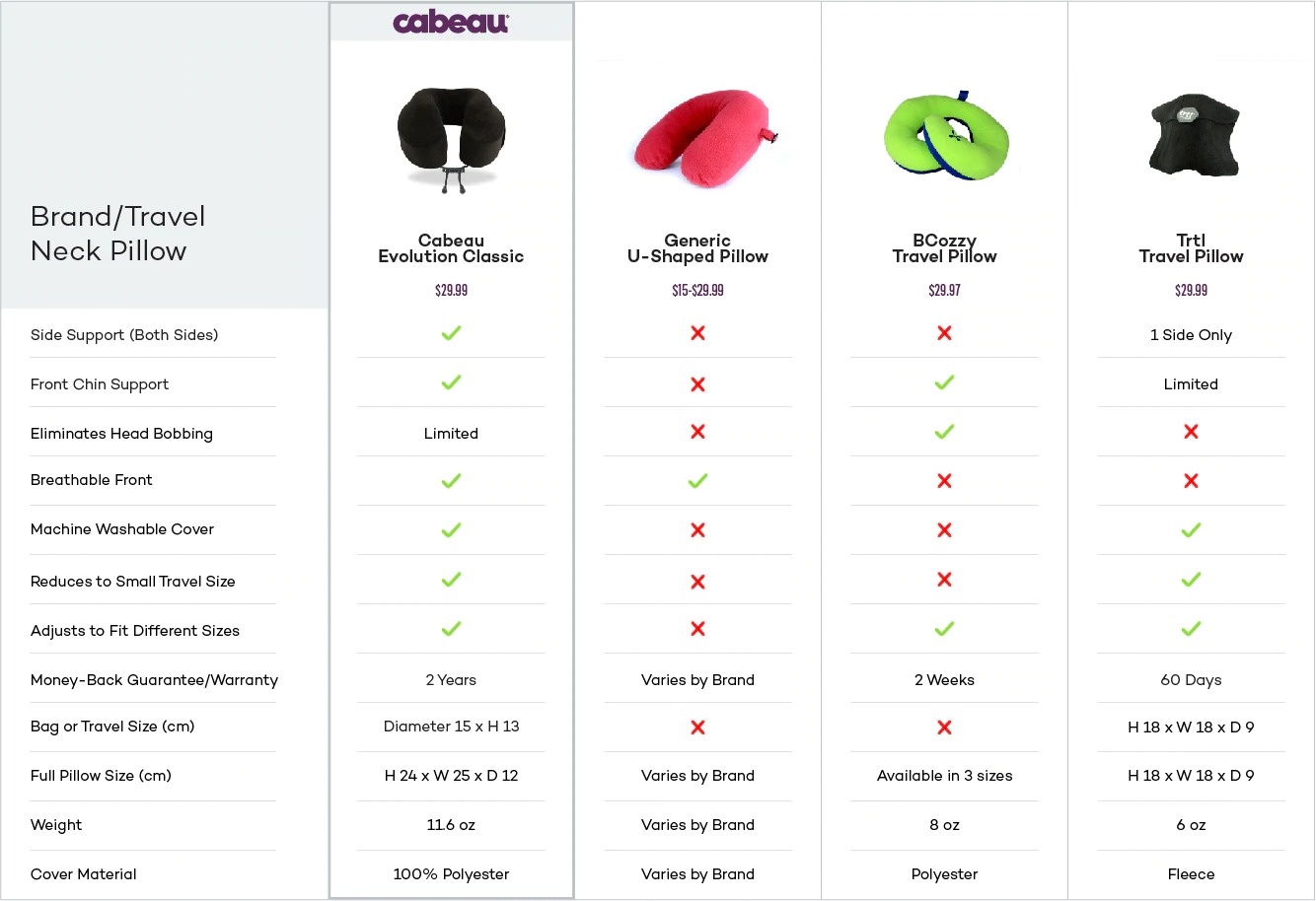Some things are classic, like the Evolution Classic®neck pillow design. Cabeau's memory foam travel pillows introduced features like a thin flat back to avoid pushing your neck forward from the seat and raised edges to support your head and chin in every direction. And like the original Cabeau travel pillow, the Evolution Classic®features a soft velour cover that's machine-washable and a toggle clasp for proper fit.