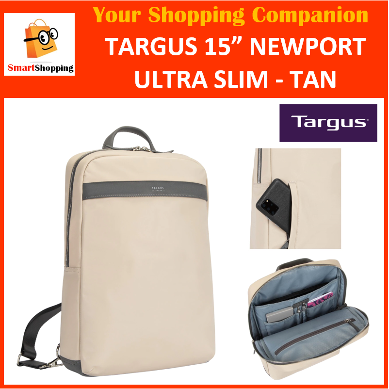 Targus 15” Newport Ultra Slim Backpack - Tan TBB59806GL-70 Newport Extension Collection Product limited Warranty