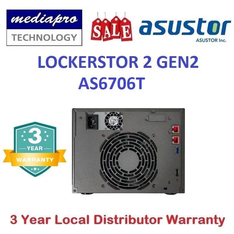ASUSTOR AS6706T 6-Bay Lockerstor Gen 2 NAS with 2.5-Gigabit Ethernet (Without HDD) - 3 Year Local Distributor Warranty