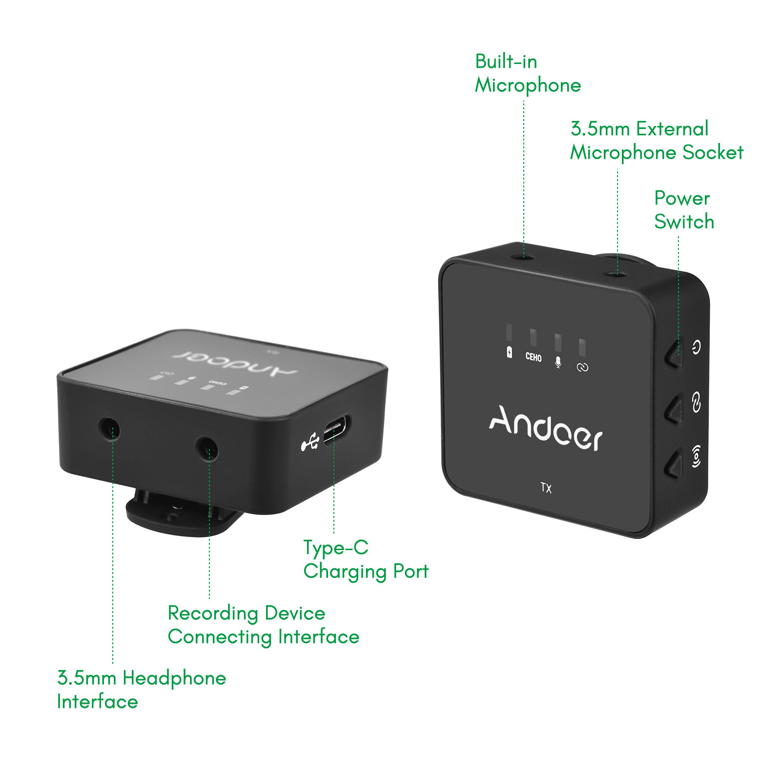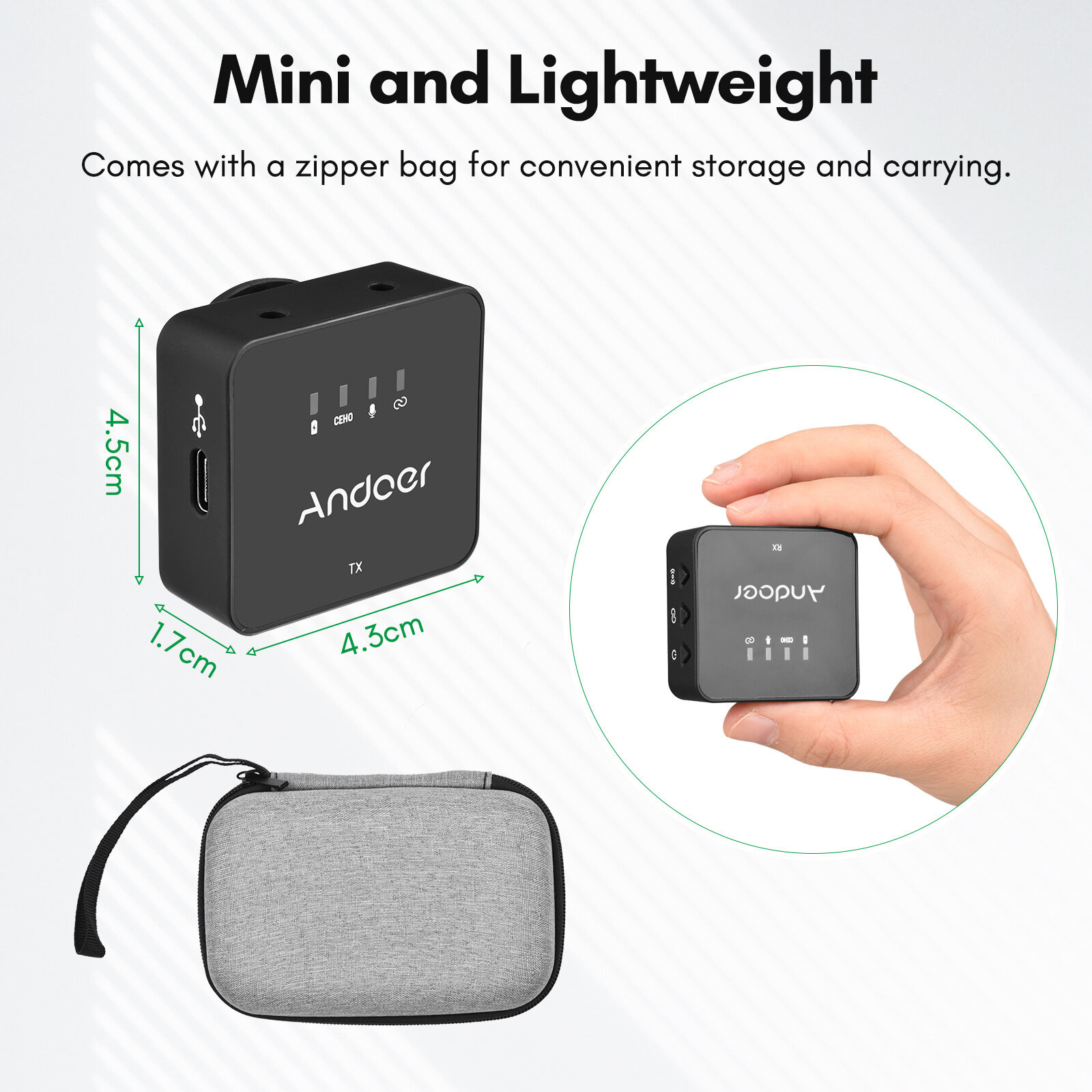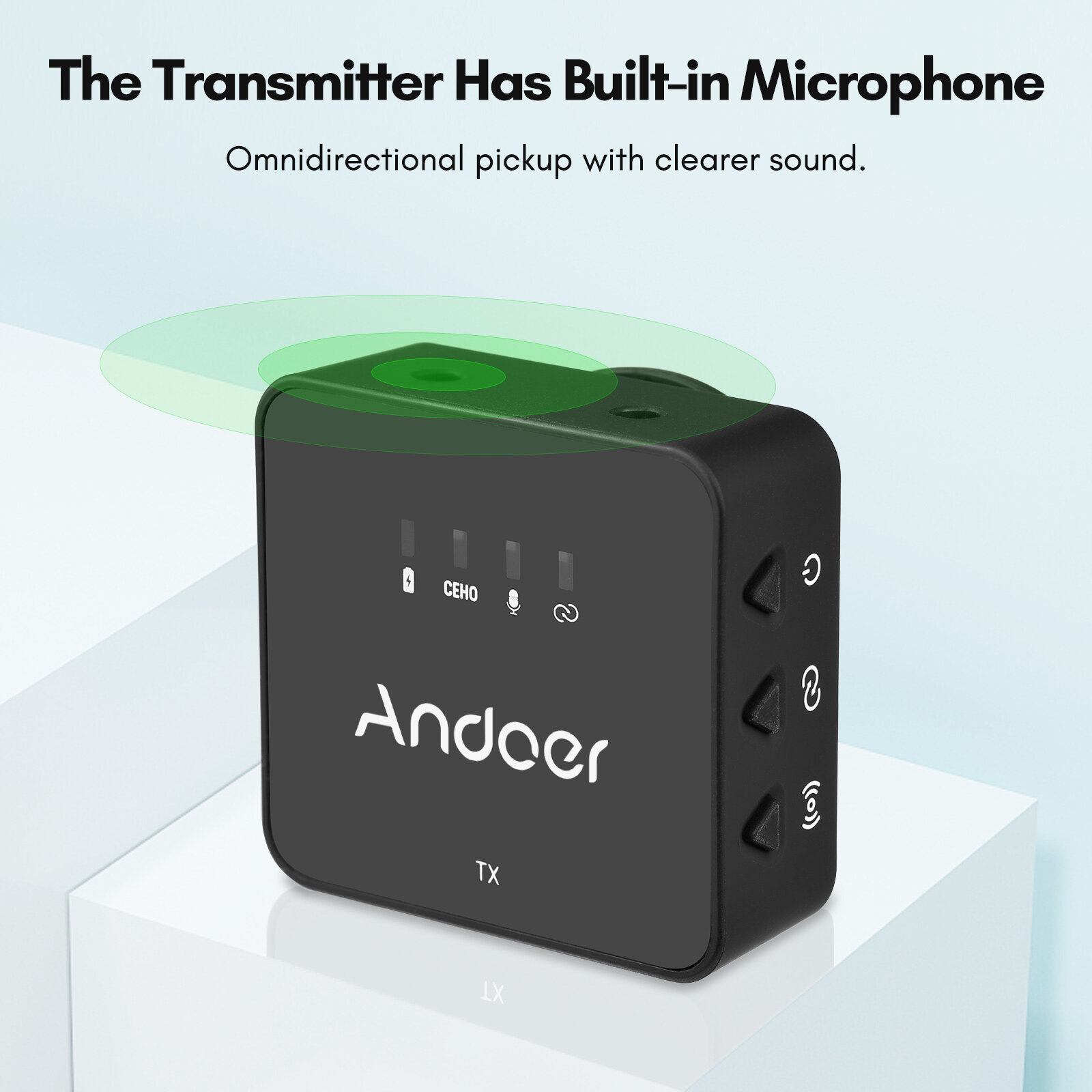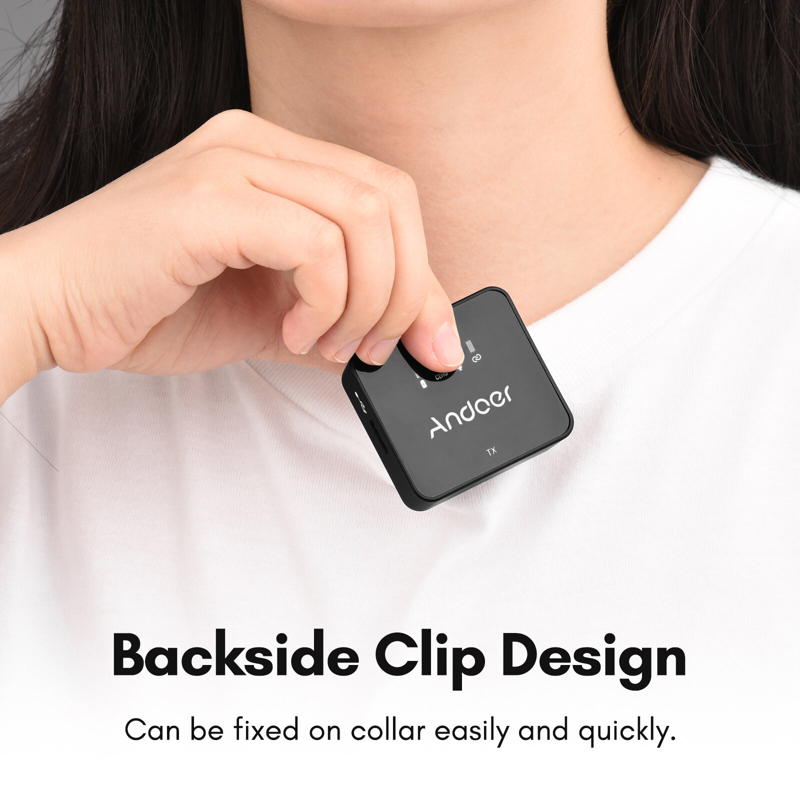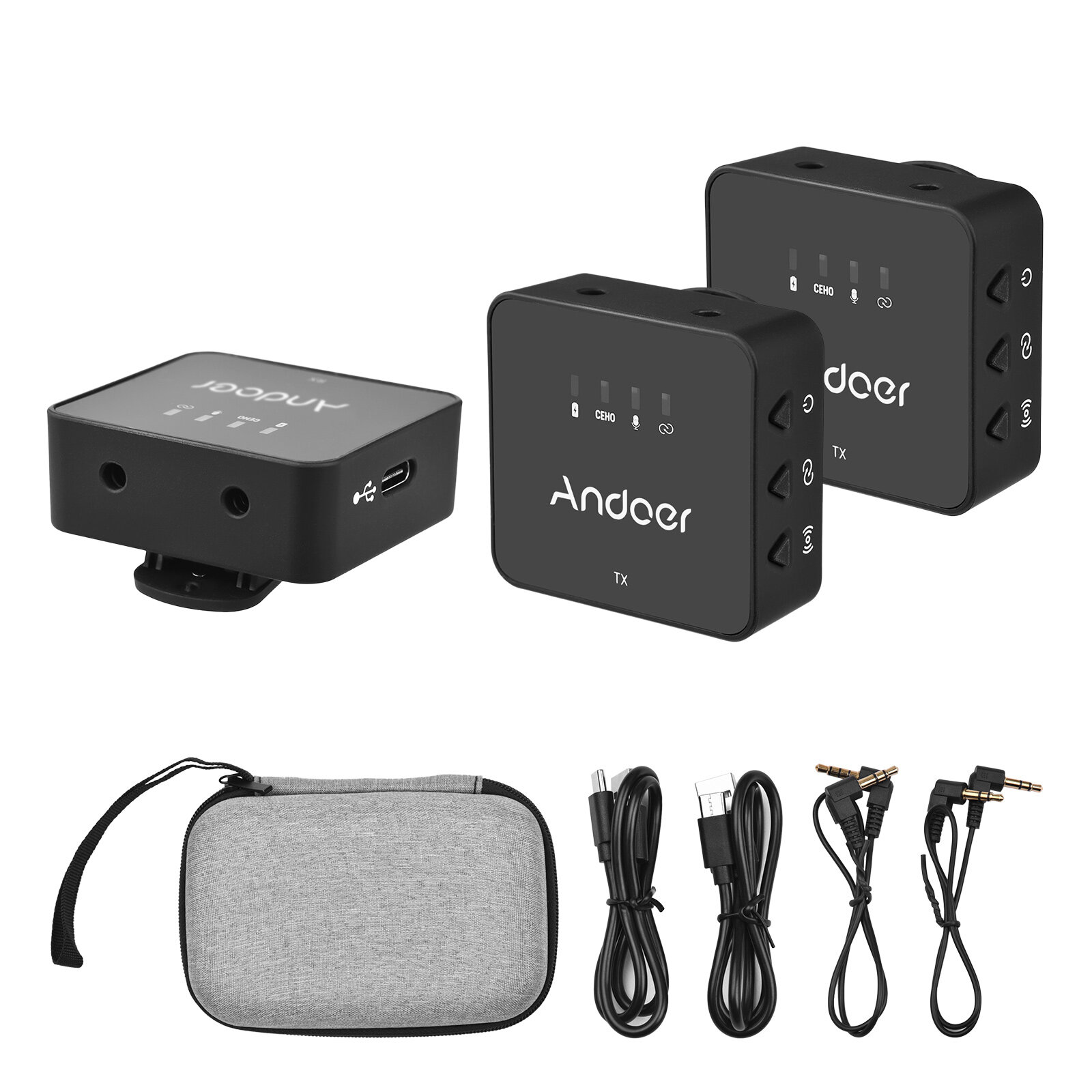 Andoer One-Trigger-Two 2.4G Wireless Microphone System (2 Transmitters + 1 Receiver) Clip On Microphone Max.30M Effective Range with 3.5mm TRS & TRRS Audio Cable for Smartphone Camera Camcorder Vlog L
