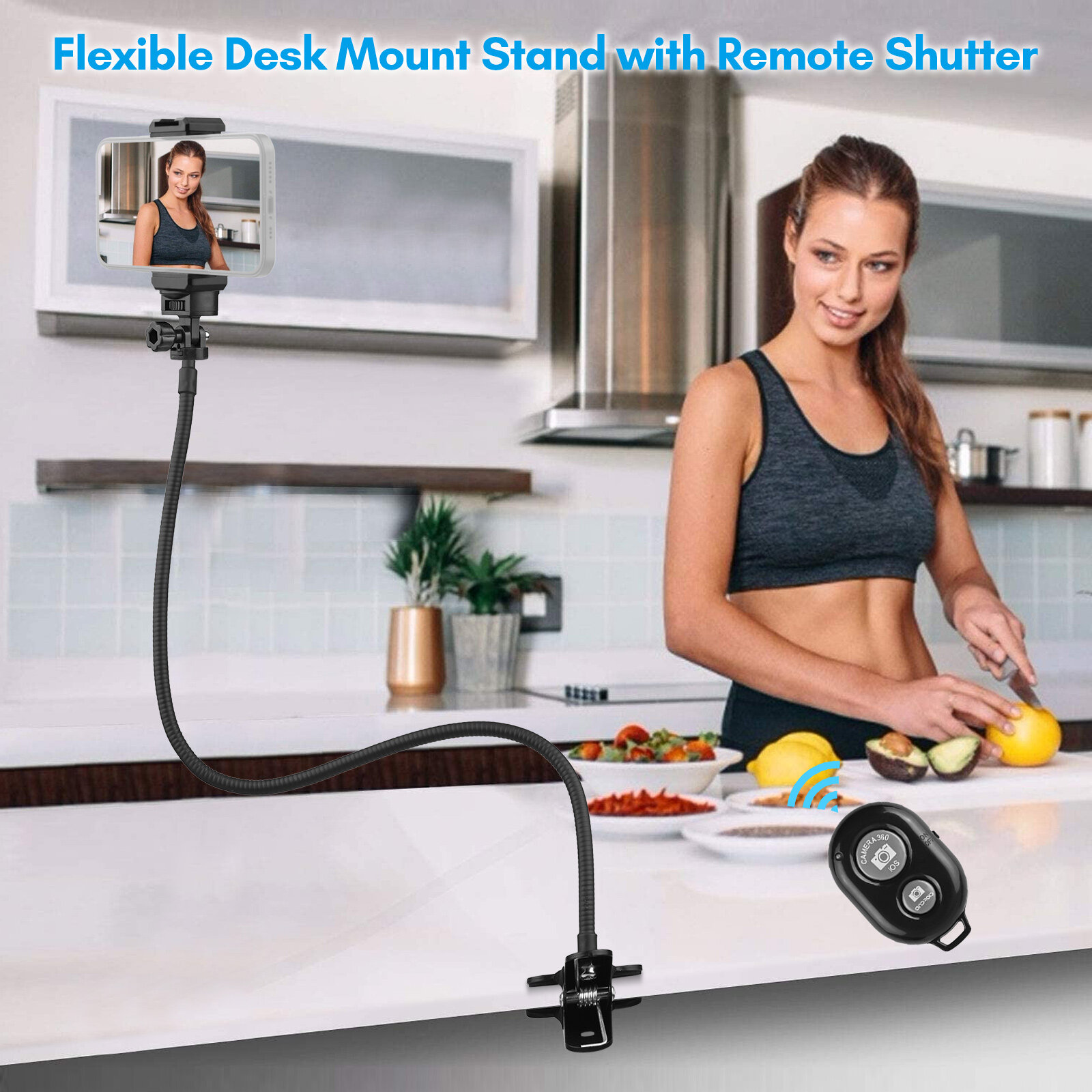 Andoer 72cm/28in Webcam Stand Flexible Desk Mount Bracket 1/4 Inch Screw 1kg Load Capacity with Phone Holder Remote Shutter for Live Streaming Online Teaching Meeting Chatting