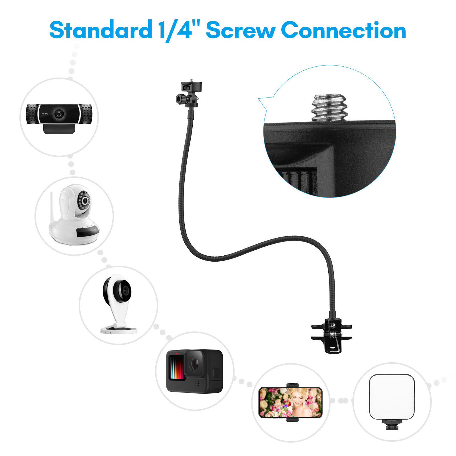 【1/4 Inch Screw Connection】1kg load capacity and with standard 1/4 inch screw, the webcam stand is compatible with most webcams, also suitable for sports camera, small LED light, smartphone (required extra phone holder), etc.