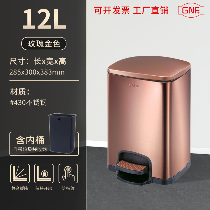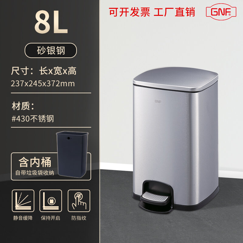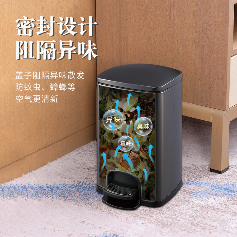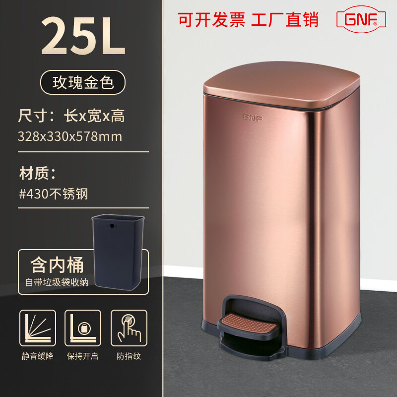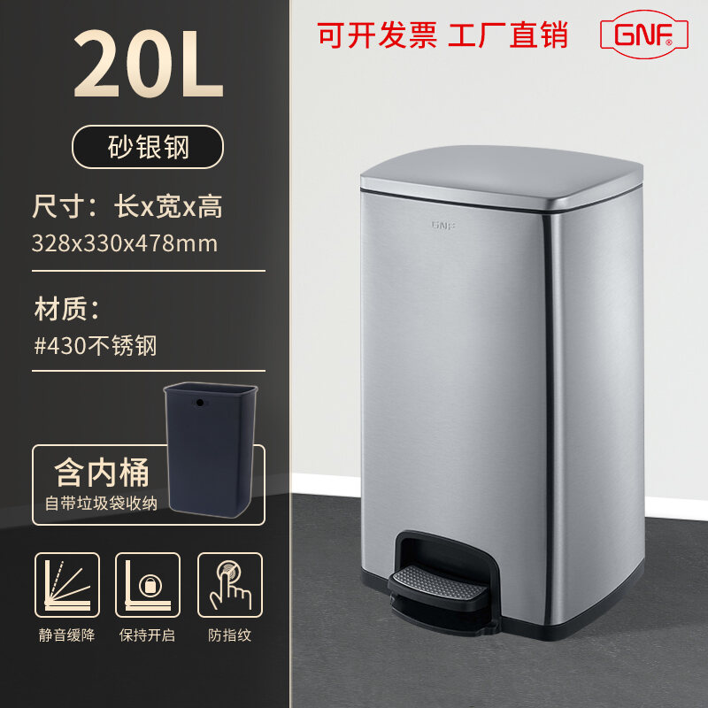 Stainless Steel Trash Can Household Pedal Square 20 Liters Bathroom Kitchen Large 25 Liters Commercial Office Storage