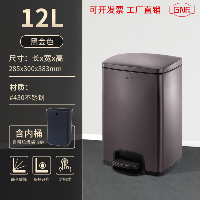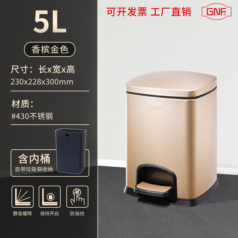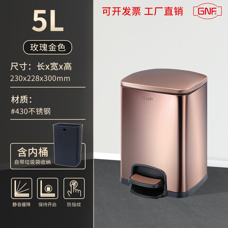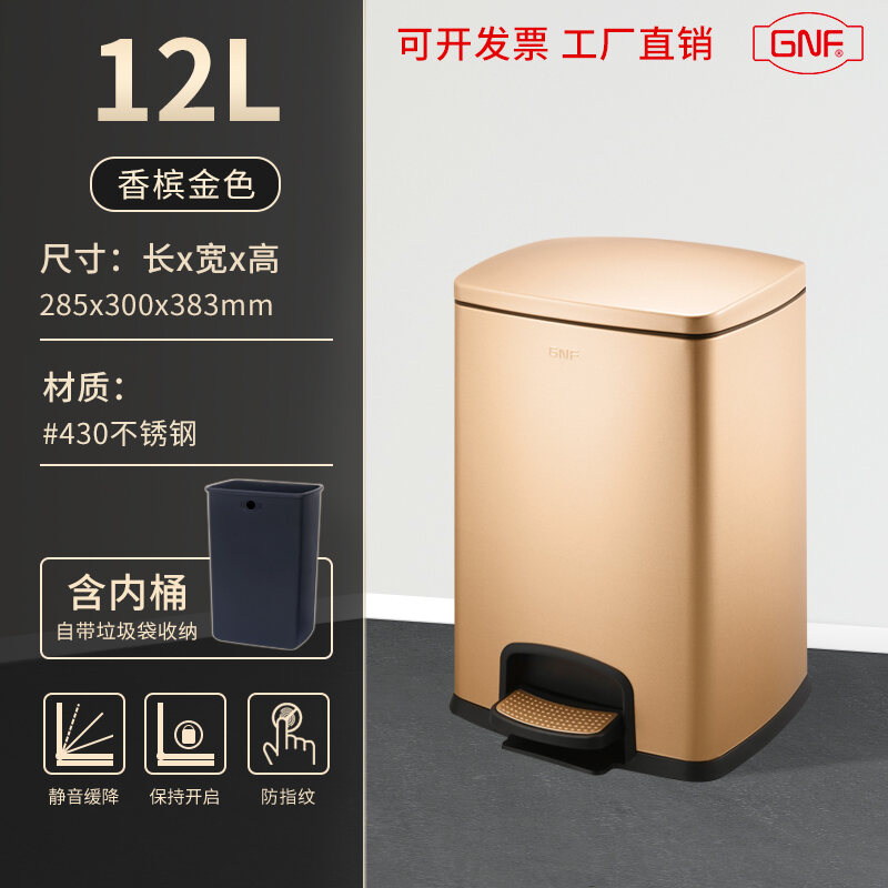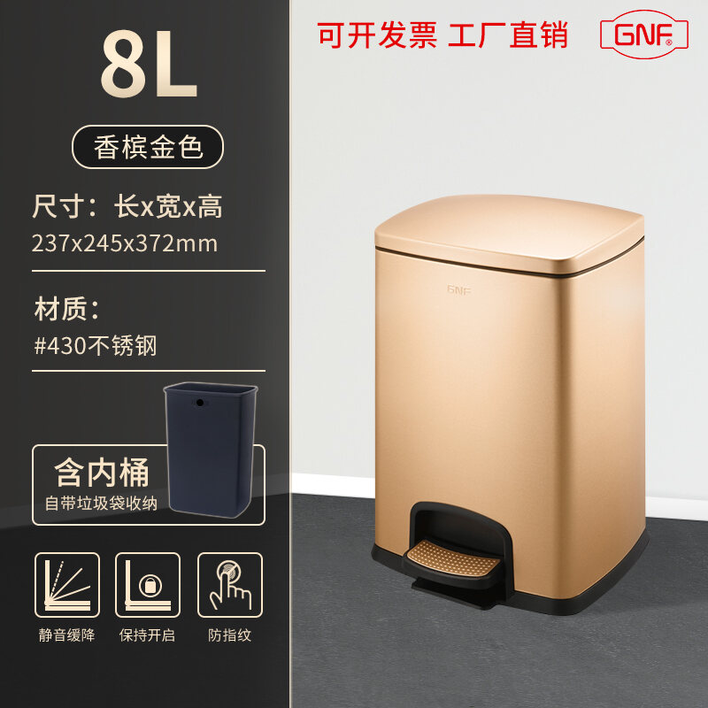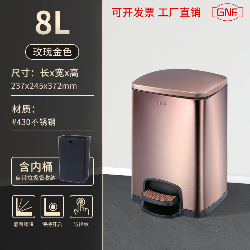 Stainless Steel Trash Can Household Pedal Square 20 Liters Bathroom Kitchen Large 25 Liters Commercial Office Storage