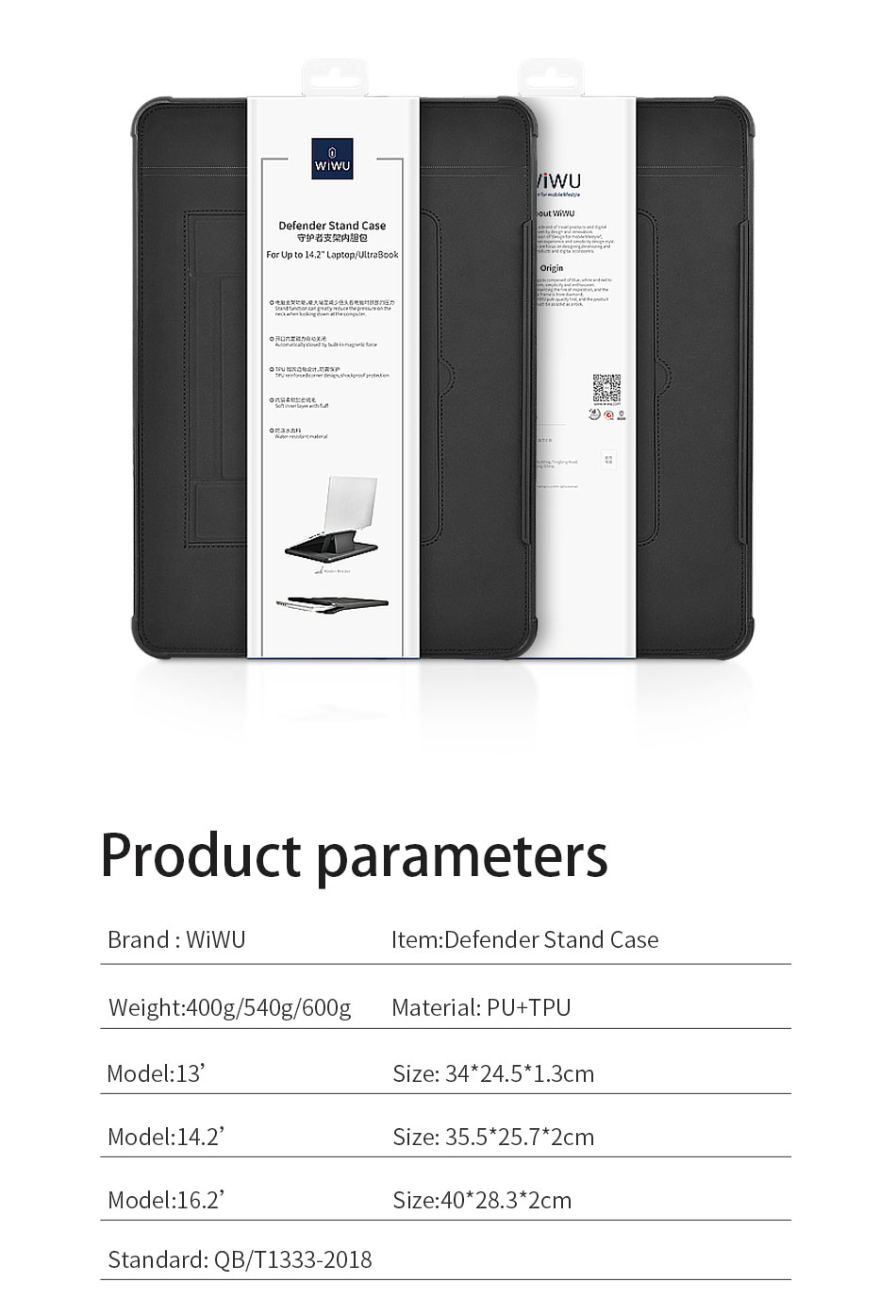WIWU 13 inch Laptop Bag for Macbook Sleeve with Stand Funcition Protable Magnetic Attached Shockproof Laptop Stand Sleeve