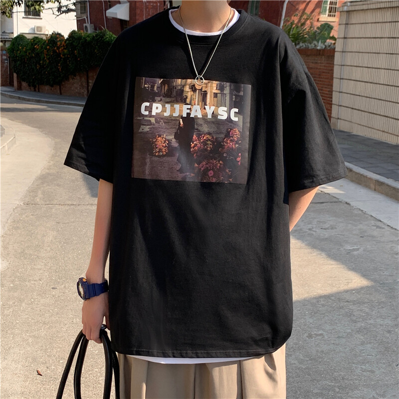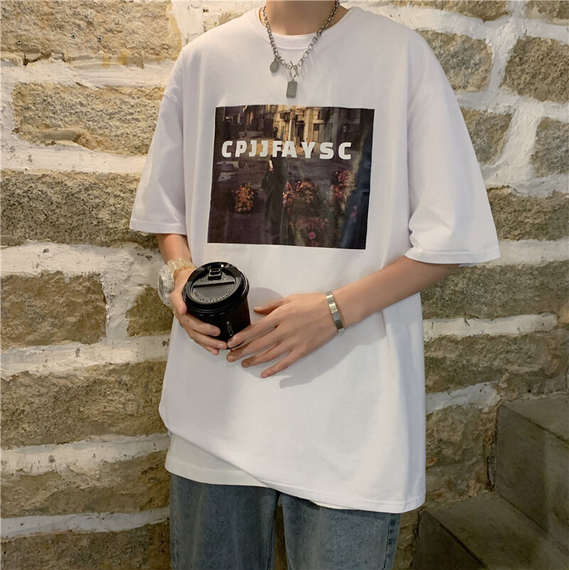 5XL t shirt Men Oversize Korean Style Graphic Print Plus Size tshirt Casual Fashion Tops