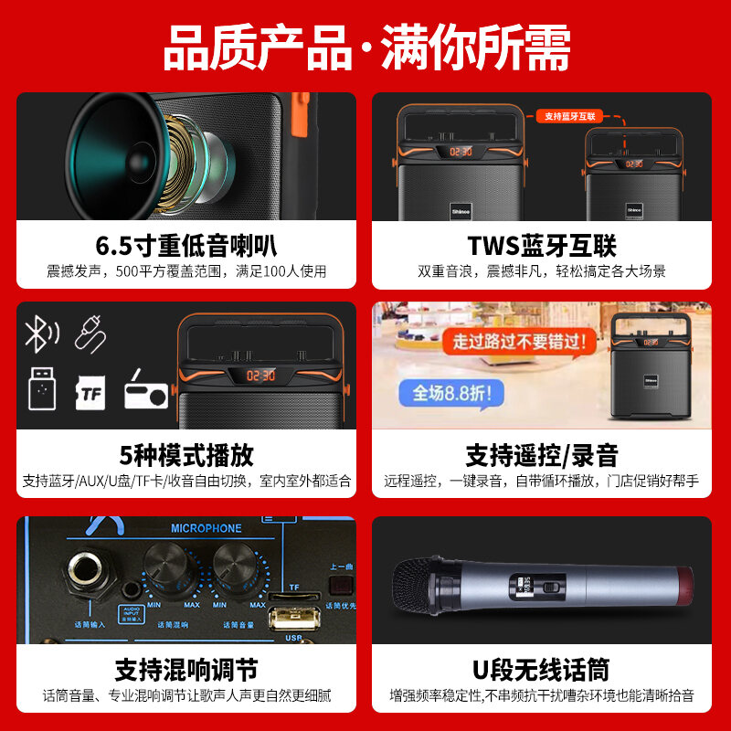 Xinke New Bluetooth Speaker Wireless Small Speaker Household Karaoke Subwoofer Outdoor Square Dance Mini Portable