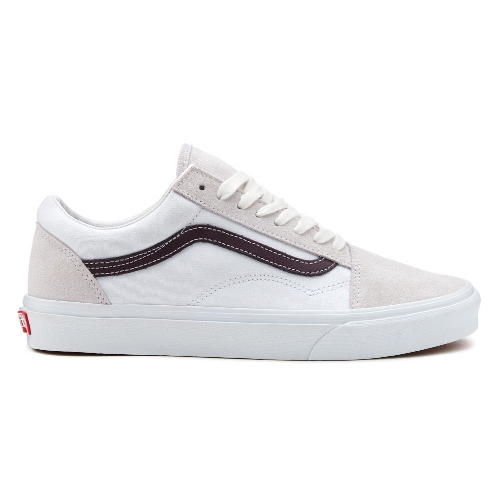 The Clouds Old Skool, the Vans classic skate shoe, is a low top lace-up featuring sturdy suede uppers, re-enforced toe caps to withstand repeated wear, padded collars for support and flexibility, and signature rubber waffle outsoles.
