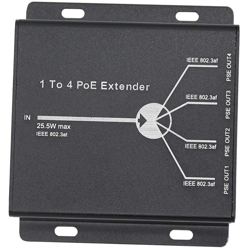 4-Ports PoE Extender has 5 10/100M PoE ports, among them, 1 port for power input, and others for power output. Comply with 10/100BASE-TX, IEEE802.3at (power-in) /IEEE802.3af (power-out). The power input is 25.5W in total. Power output for single port is 15.4W ( max).