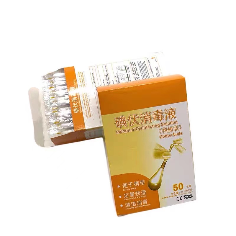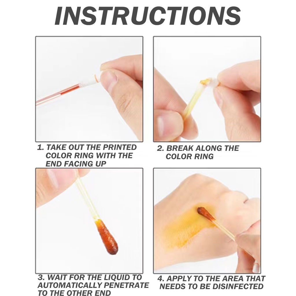 ?. Gently fold the cotton swab, and it will change to iodophor in seconds: one side of the colored ring is facing up, break it gently, and soak the other end carefully