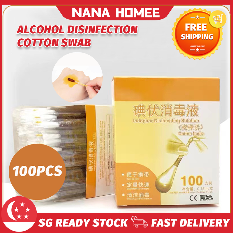 ?Buy 2 Free 1?100Pcs Portable Disposable Medical Iodine Cotton Swab Double Sides Cotton ball Lodophor Alcohol Wipe disinfection cotton swab?SG Ready Stock