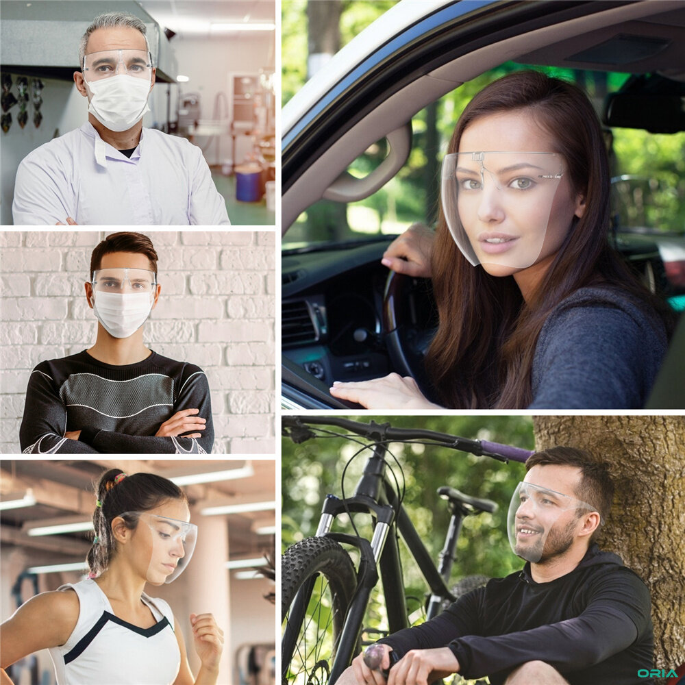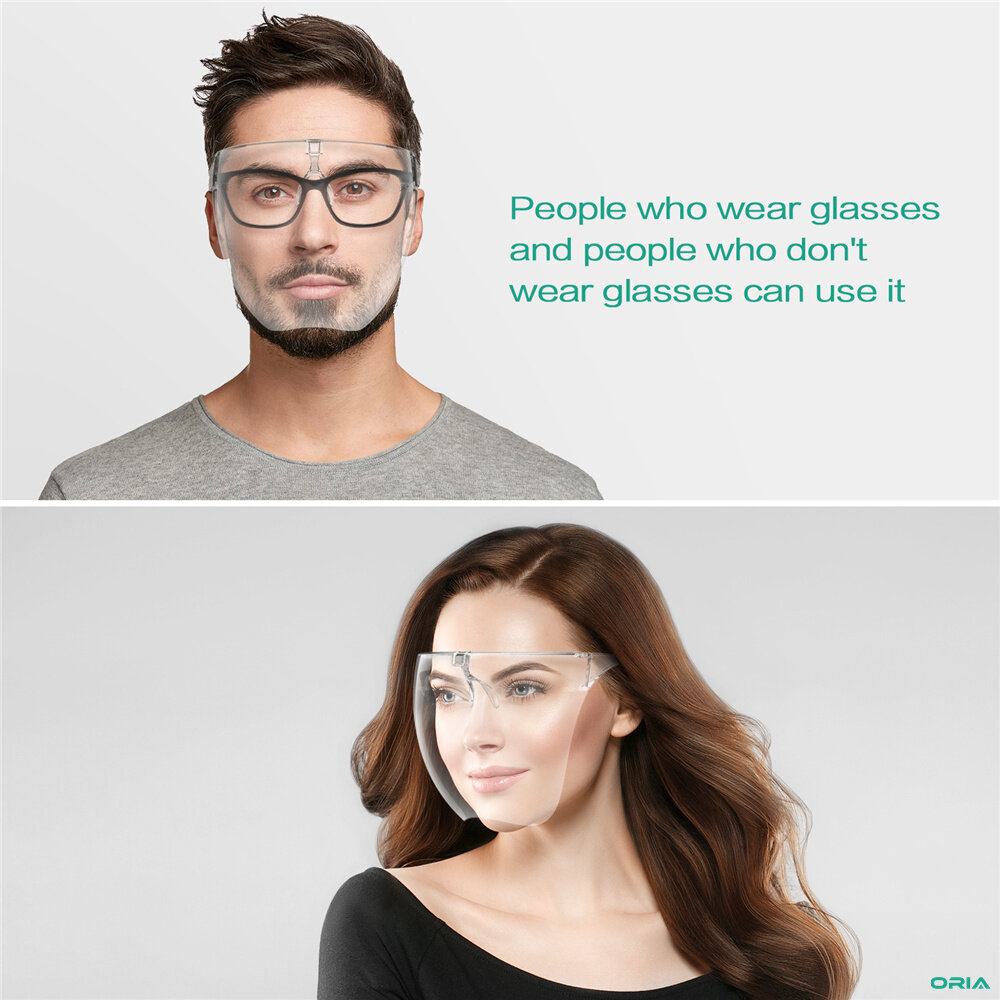 2Pack Brifit Newest Clear Face Shields, Unisex Full Face Mask with Glasses, Full Cover Protective Sunglasses, Fashion Tinted Eye Shield Protection