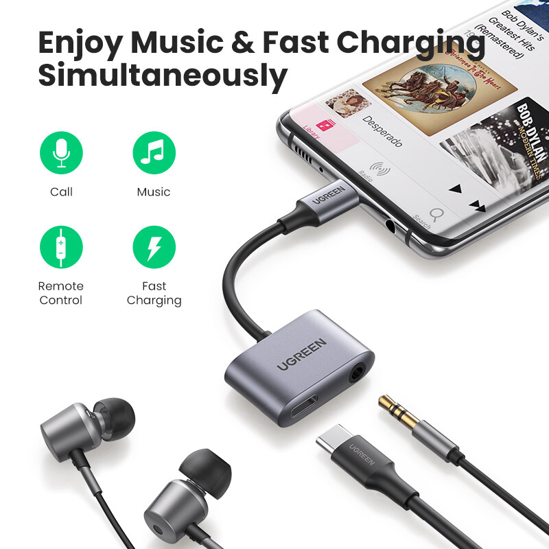UGREEN 2-in-1 USB C Type C to 3.5mm Aux Audio Jack Adapter For Samsung / iPad Pro