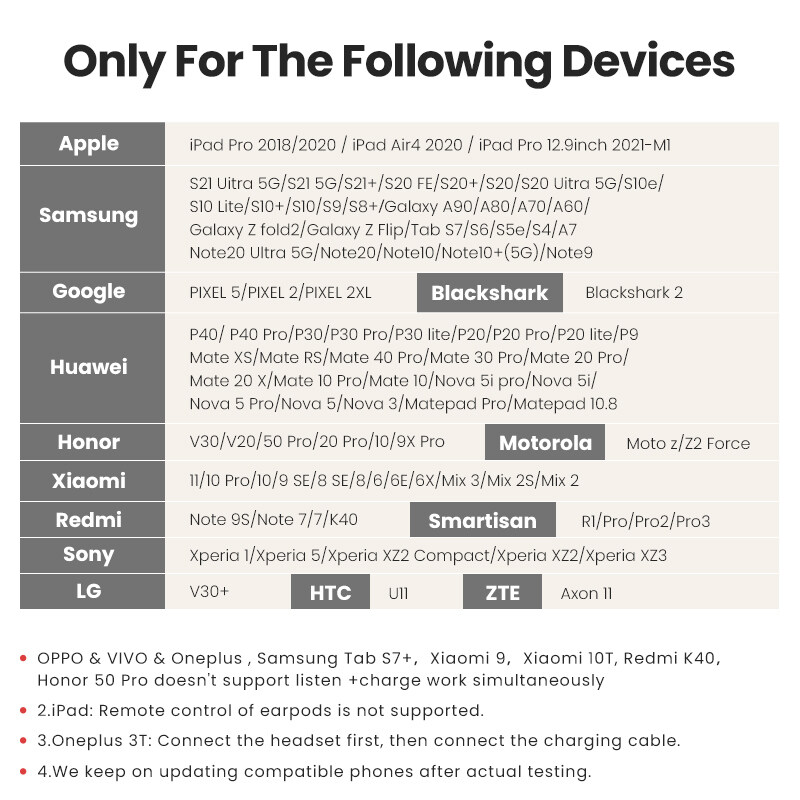 2. For Oneplus 3T, please plug in the earphone first, and then charge it. These two functions can be used at the same time.