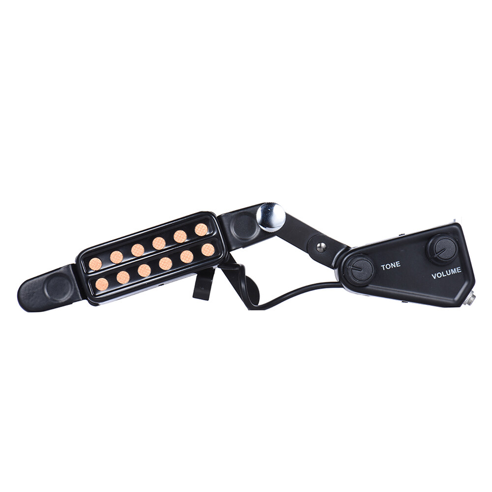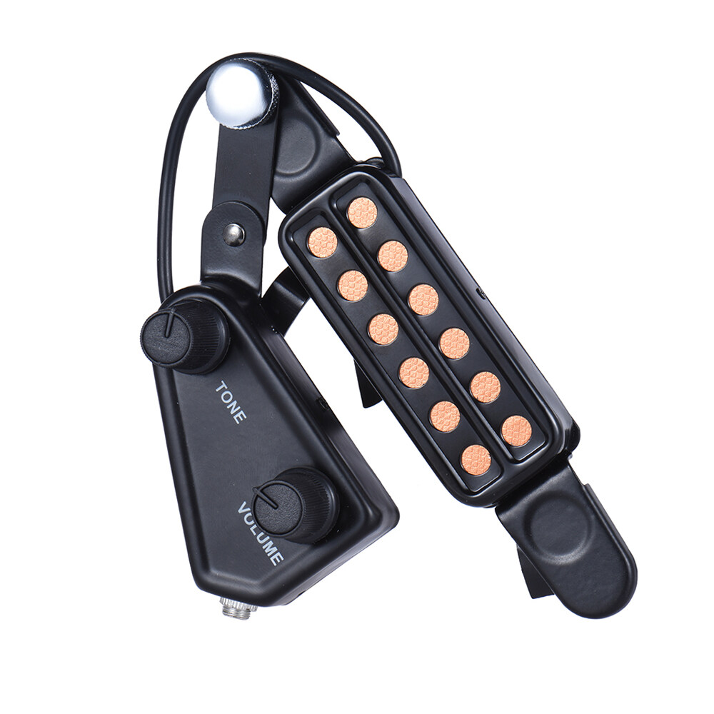 Acoustic guitar pickup with 12-hole magnetic transducer, can capture vibrations quickly.