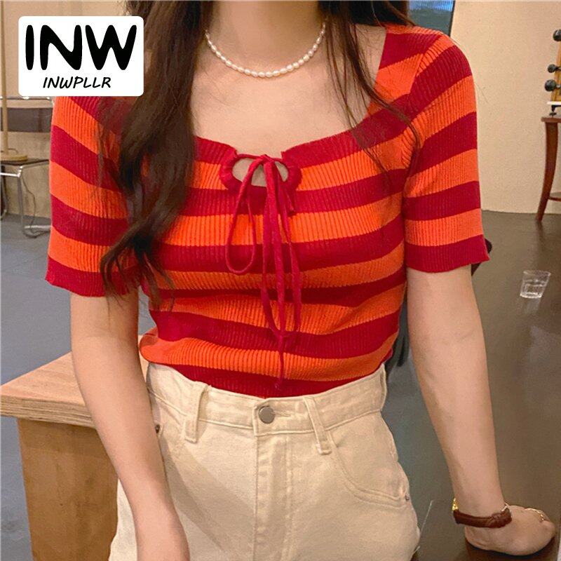 INWPLLR Design Sense Bow T-shirts Women's Fashionable Short Sleeve Tops Tees Front And Back Wear Female Tshirt