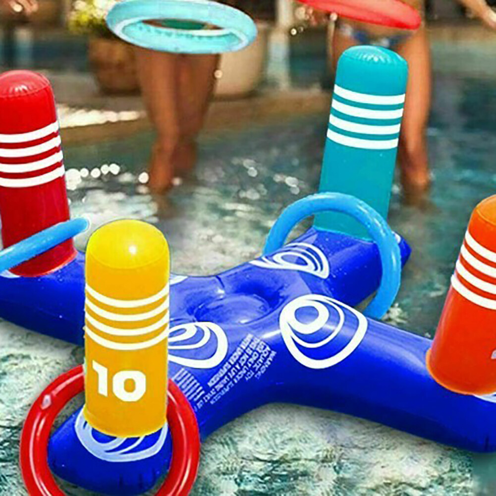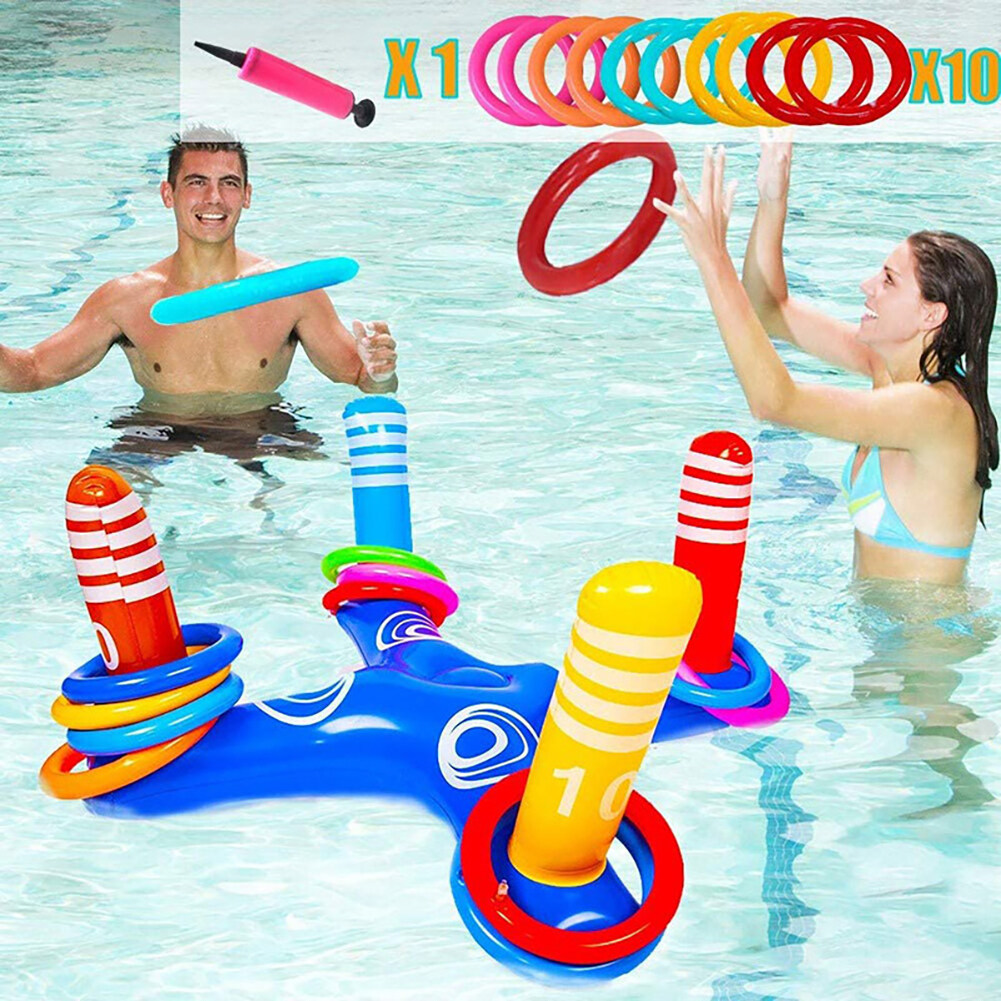 1. Pool Tossing Game: Set includes 1 Inflatable Pool Tossing Game, 4 Tossing Rings and 1 Pump. 6 pieces of inflatable billiards game for multiplayer.