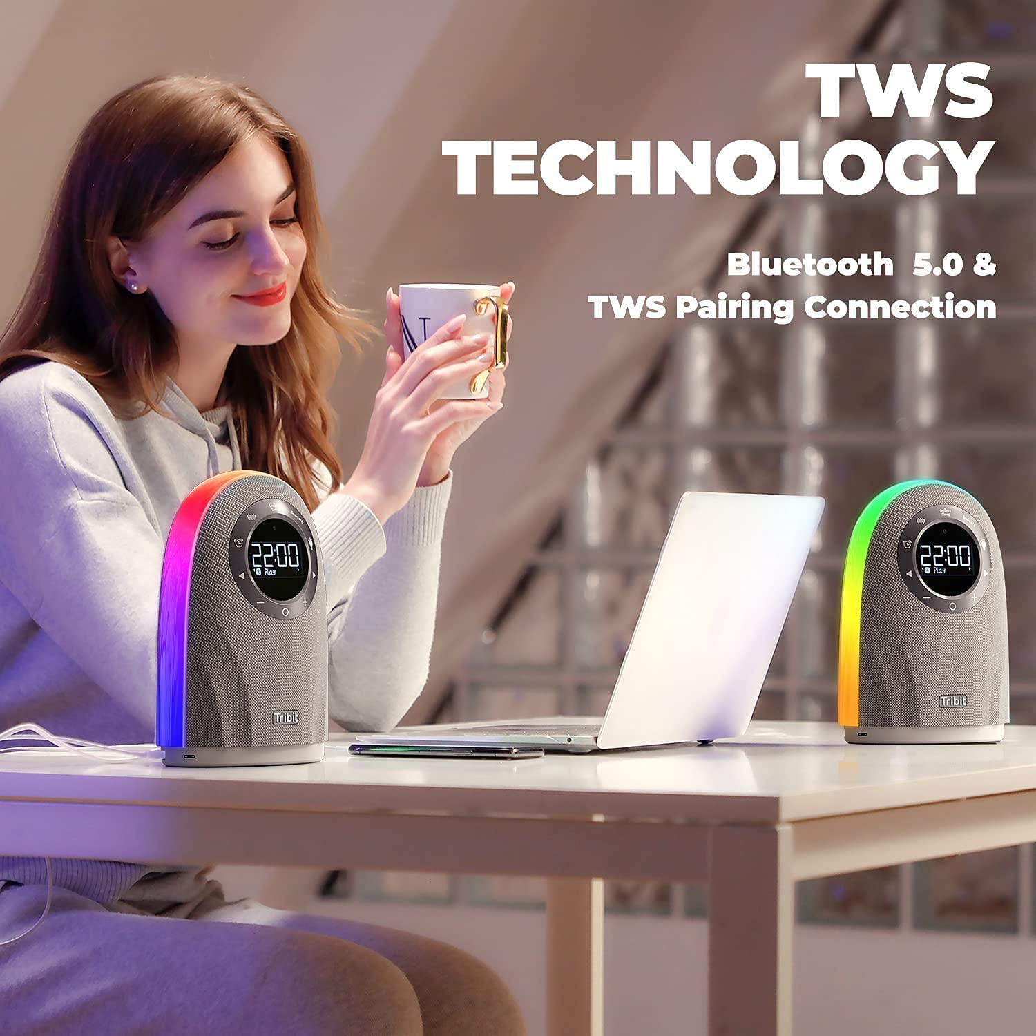 [SG] Tribit Home Bluetooth Speaker with FM Radio and LCD Time Display, RGB Lights Show,2 USB Output Ports, Premium Speakers