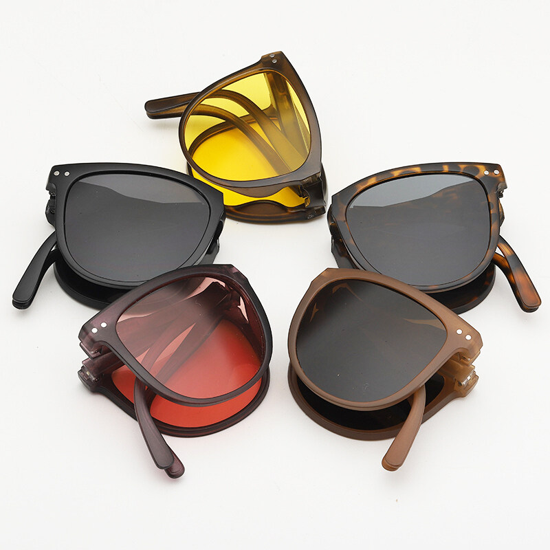 Sunglasses Sunscreen Men and Women Convenient High-end Oval Frame Cover Folding Sunglasses PTQ
