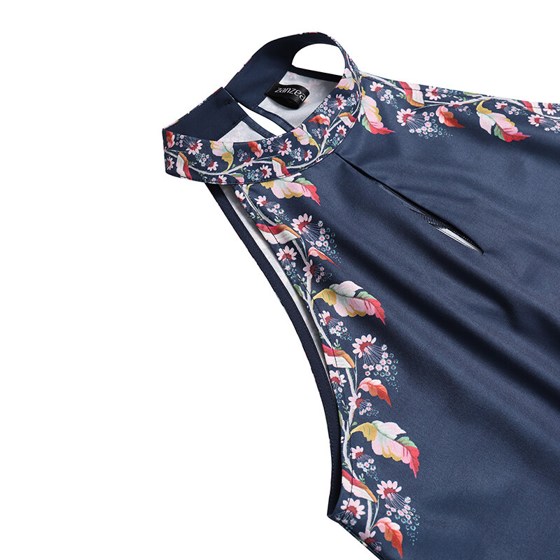 ZANZEA Womens Summer Beach Ethnic Printed Retro Sleeveless Hollow Out Halter Mini Dress