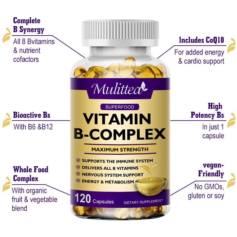 Vitamin B Complex Capsule (B12, B1, B2, B3, B5, B6, B7, B9, Folic Acid & Biotin) ,Reduce Stress & Supports Better Moods ,Assists Nervous System Health & Energy