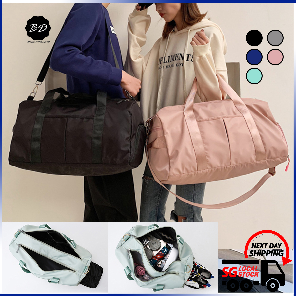 ?[SG] Unisex Duffel Bag Travel with Wet Dry Separation & Shoes Compartment/ Gym Fitness Bag/ Weekend Bag/ Yoga Bag