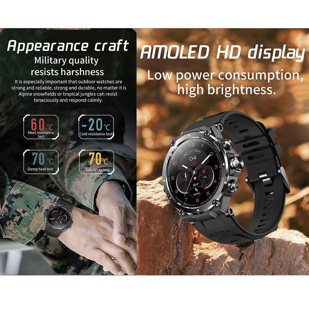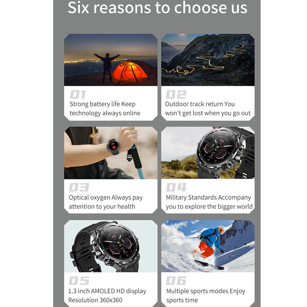 LEMFO GPS Smart Watch AMOLED Screen 5ATM Waterproof Heart Rate Blood Oxygen Health Monitor Sports Military Smartwatch for Men Women Android iOS PK Stratos 2
