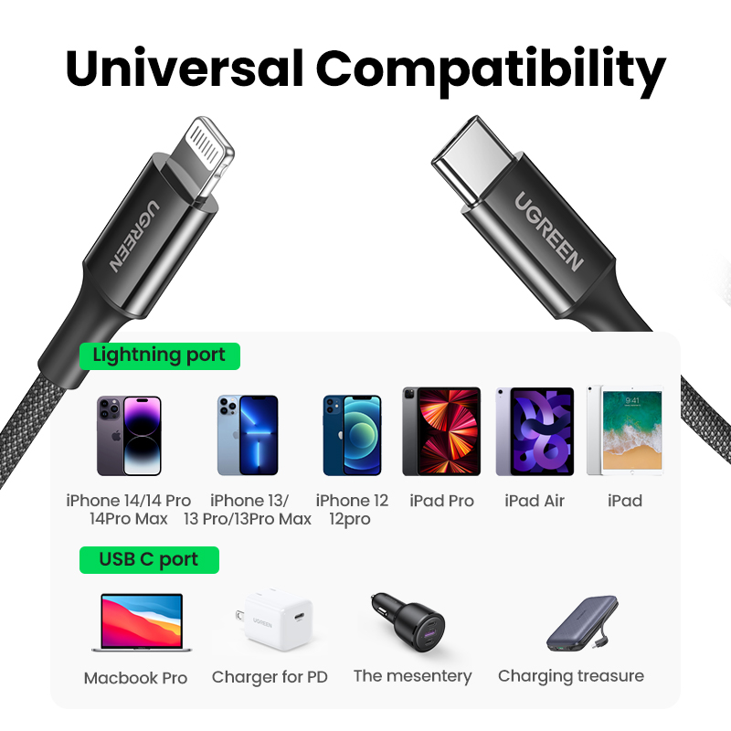 UGREEN USB C to Lightning Cable MFi Certified Charging Cable for iPhone 14 13 Pro Max iPhone 14 Plus iPhone 12 11 Pro Max 8Plus