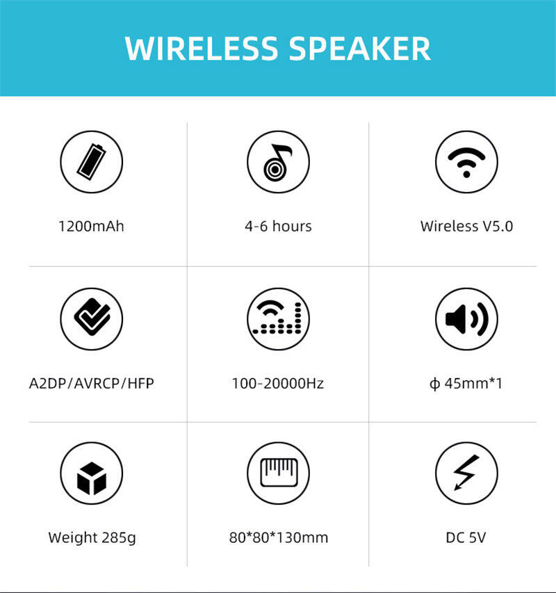 LED Light Mini Portable Wireless Speakers Desktop Subwoofer Stereo TWS Column Audio Center for Bluetooth Computer Soundbox