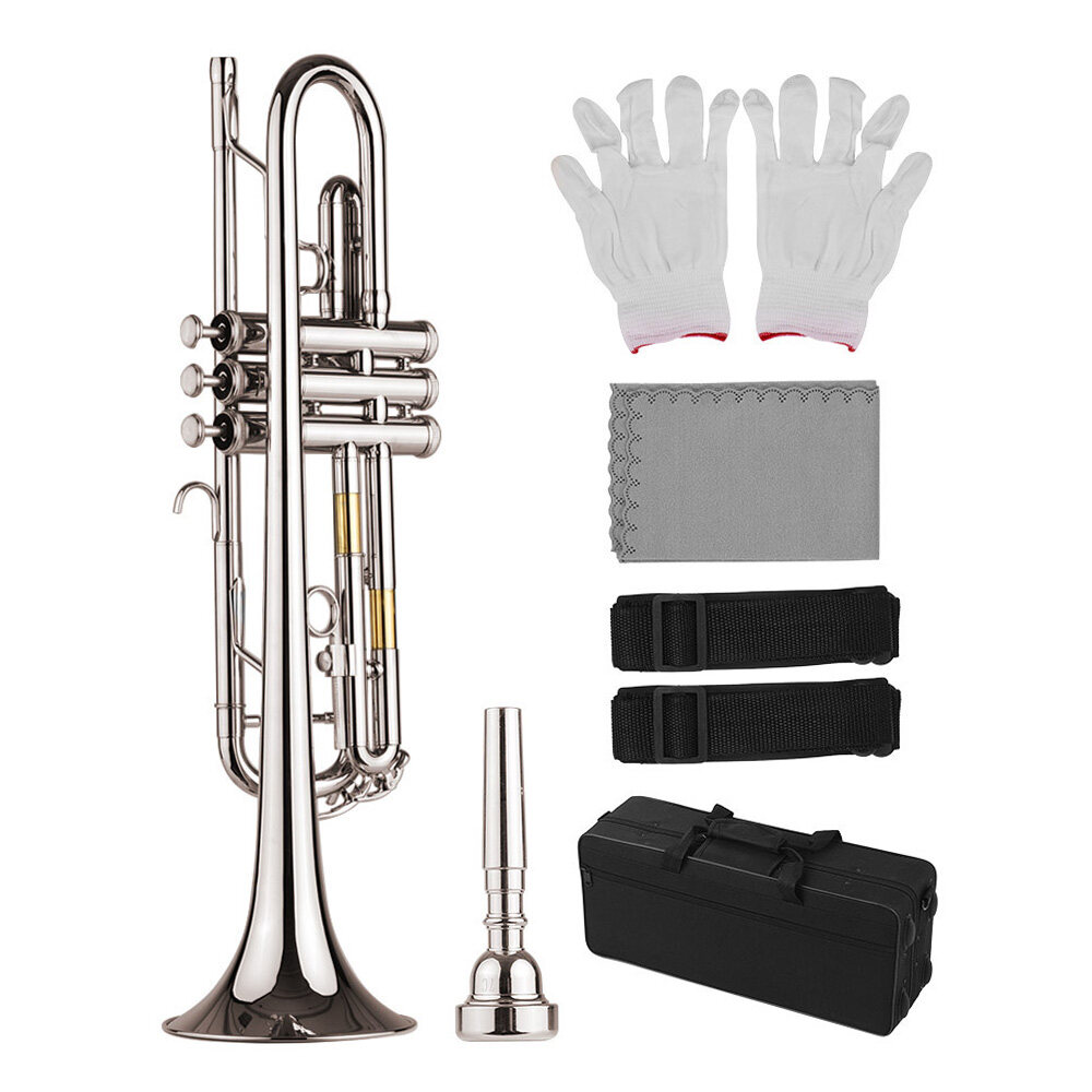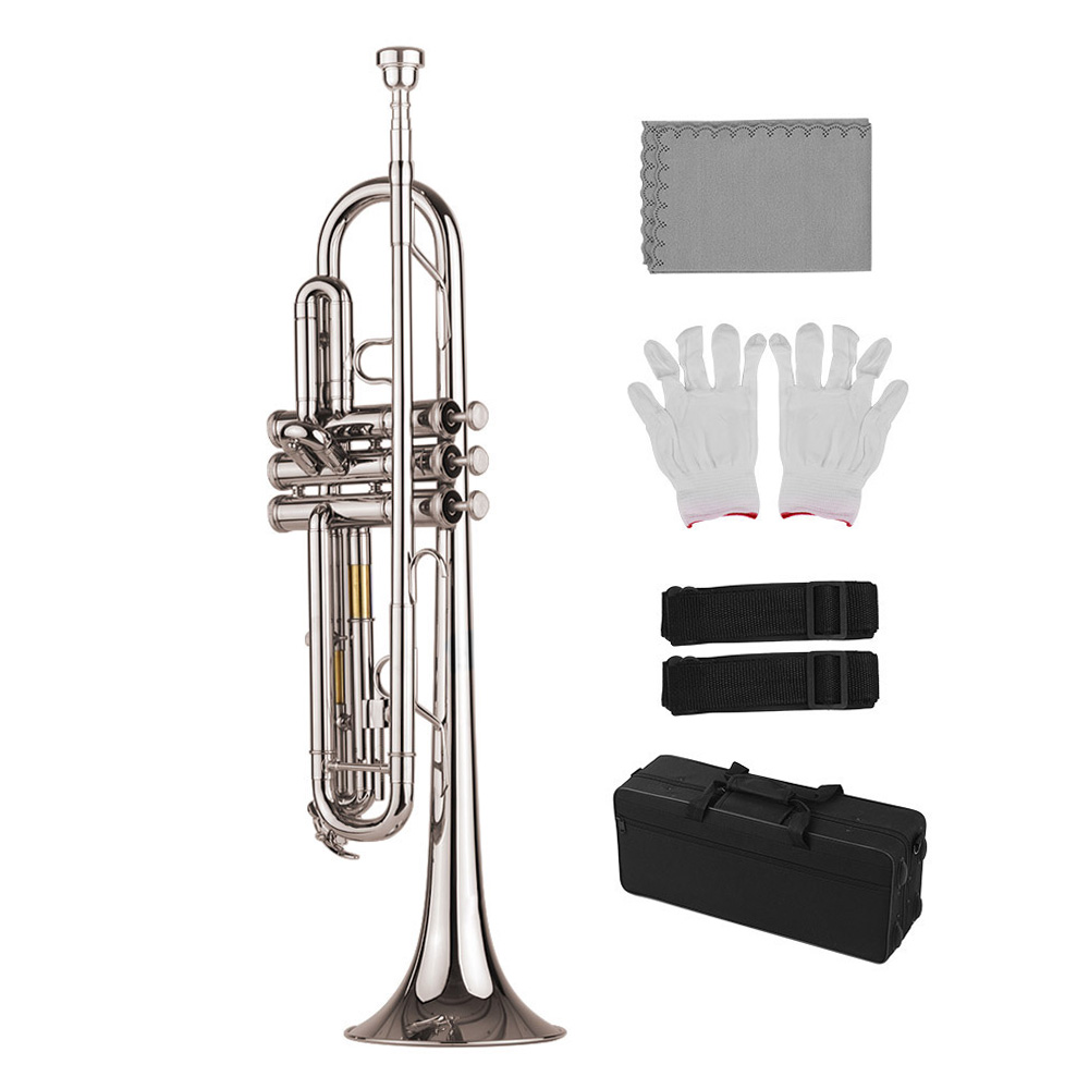 Standard Bb Trumpet Brass Material Nickle Plated Wind Instrument with Mouthpiece Carry Bag Gloves Cleaning Cloth