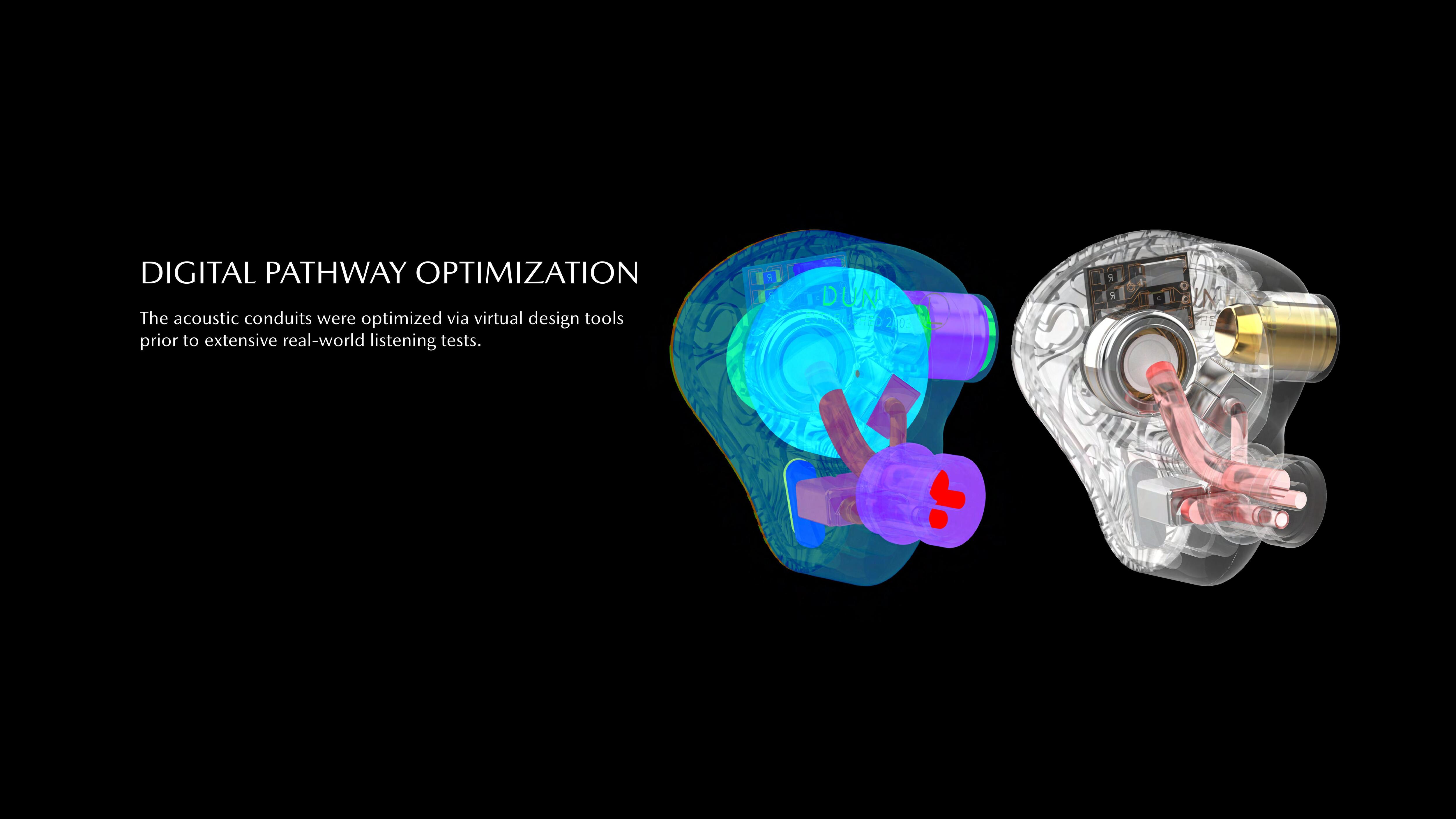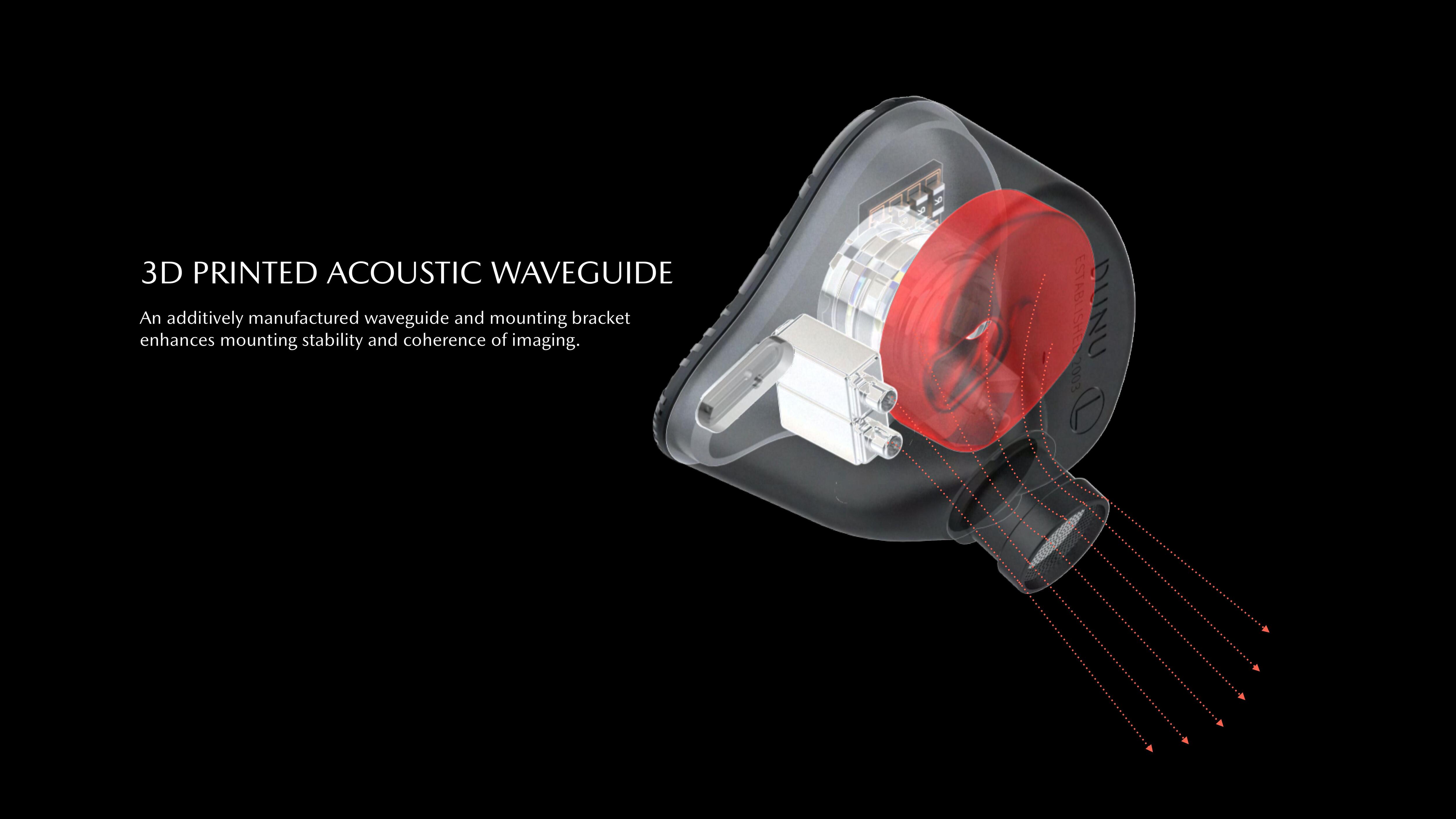 VULKAN embodies power and authority, inside and out. By leveraging the latest virtual and digital tools in our design process, VULKAN is one of the most finely iterated products to be released even before a physical build. Every component has been optimized in software to maximize performance, from the dual coaxially-aligned 8 mm dynamic drivers to the Knowles drivers phase-match with a 3D-printed waveguide inside.