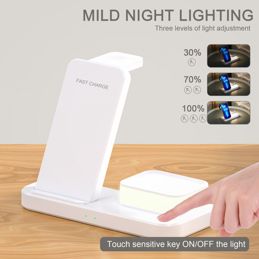4 in 1 Foldable Fast Wireless Chargers Stand with Light magsafe charging for iPhone 13/12/11/XR/Samsung/S21/S20 For iWatch 7/6 AirPods3 Pro
