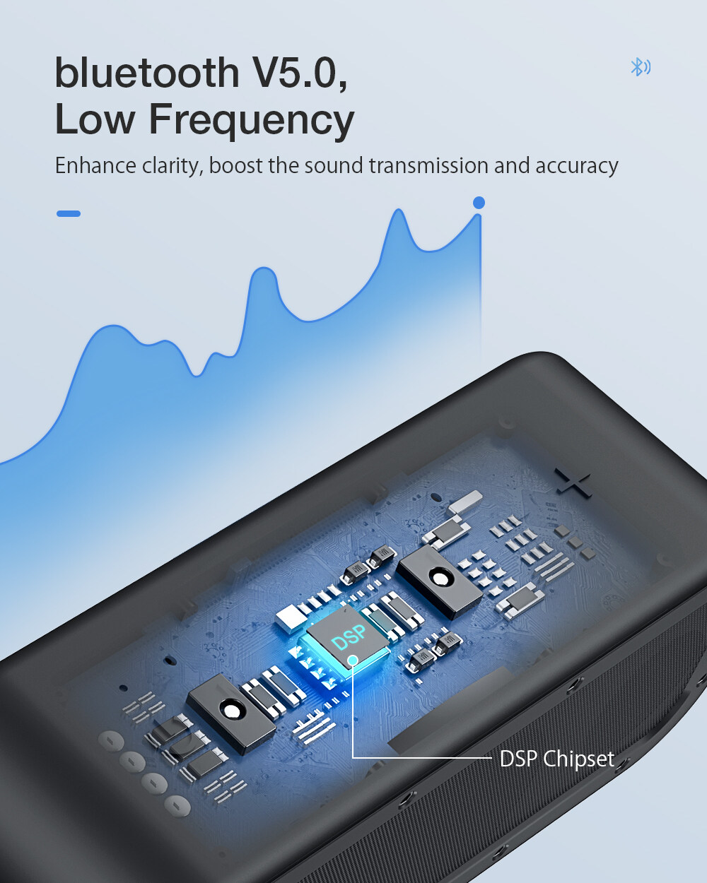 - 100W Powerful Output, Punchy Bass-- Indulge yourself in concert-like feast filled with deeply enhanced bass and sense rich details.