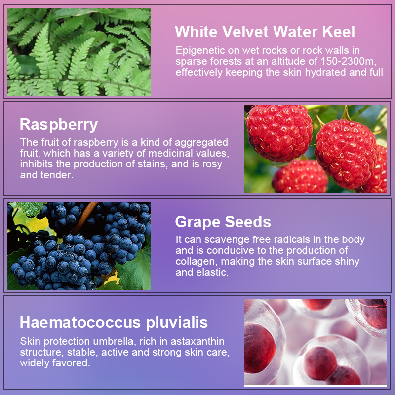 ✅Brighten the skin and keep it rosy - Raspberry and white velvet water keel can effectively keep the skin hydrated, plump, rosy and delicate, and inhibit the generation of pigmentation.