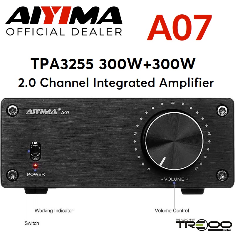 AIYIMA A07 TPA3255 (LM4562NA / NE5532) 300Wx2 Hi-Fi Integrated Amplifier (Official local stock - SG/UK plug)