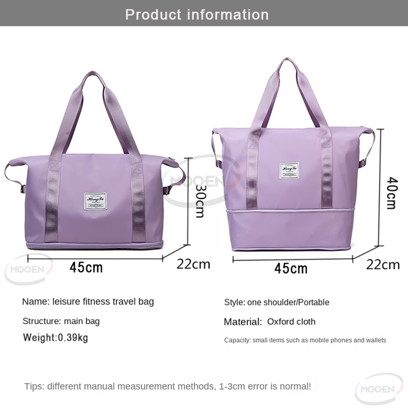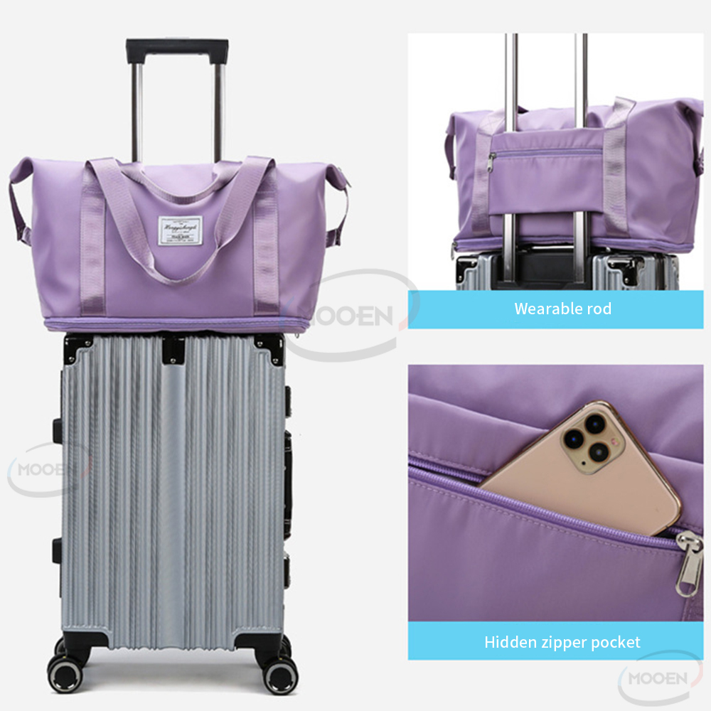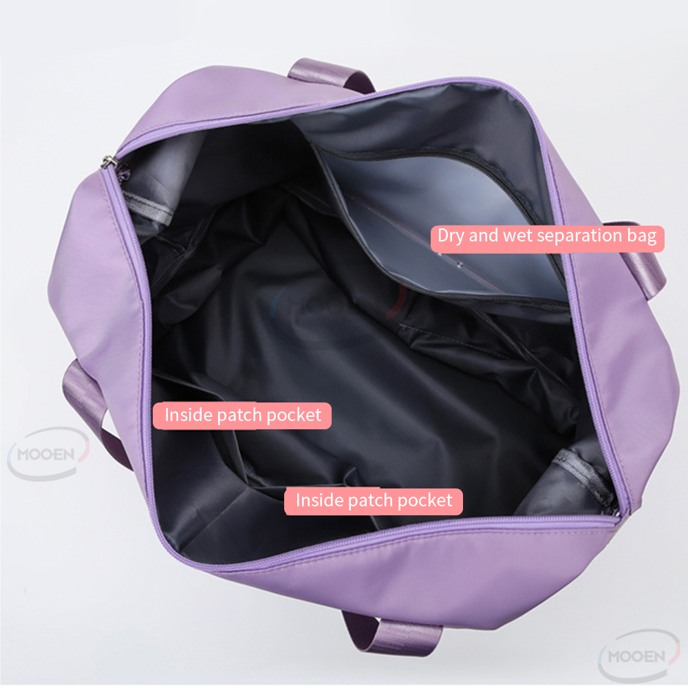 The bottom of the zipper hides the expansion function, allowing you to solve the trouble caused by too many or too few items during travel. One zipper pockets and two Inside patch pocket and a wet and dry separation bag on the bag.