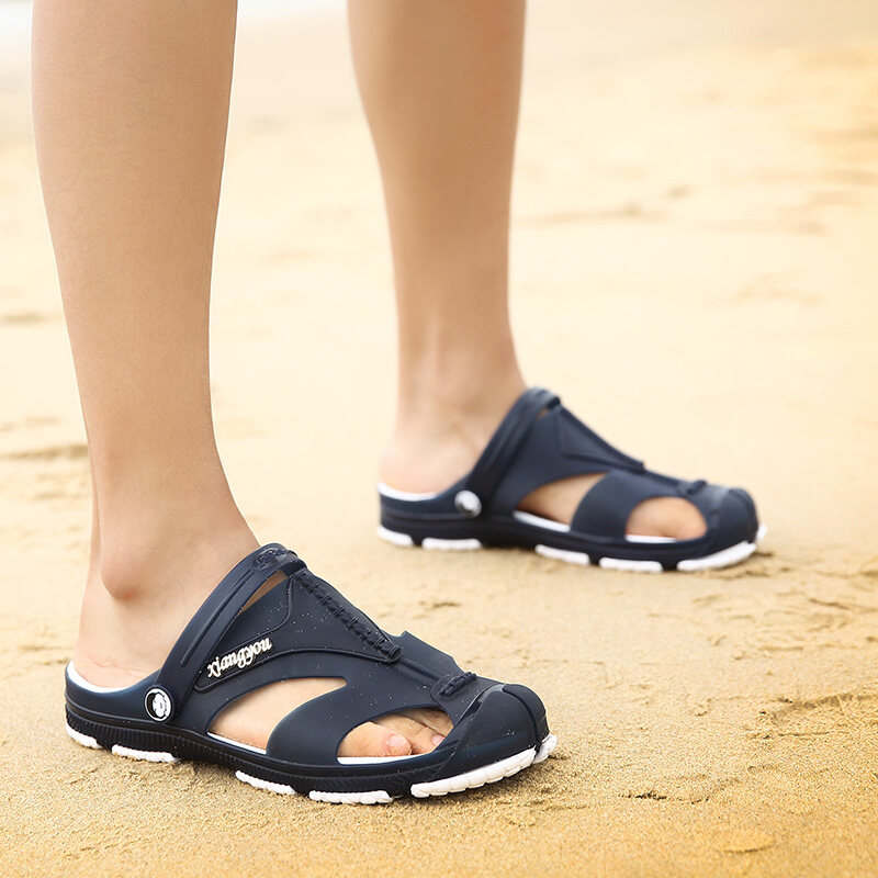Half Slippers Men's Summer Slippers Lazy Heel-Free Slip-on Mesh Sandals Closed Toe Sandals Trendy Semi Slippers