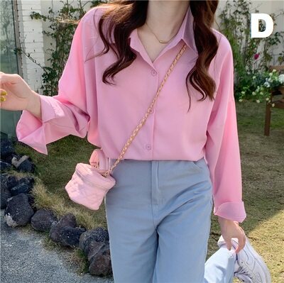 Women Clothing Long Loose Sleeve Polo Colar Fashion Tops