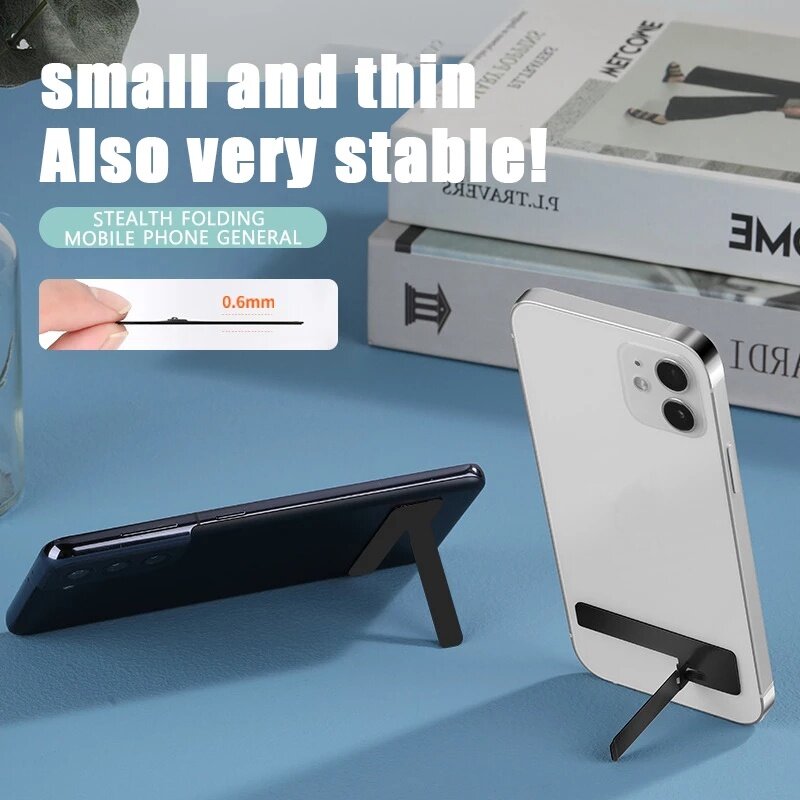 Ultra-Thin Mini Metal Folding Phone Holder Alloy Invisible Mobile Stick Phone Back Portable Desktop Phone Bracket