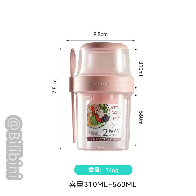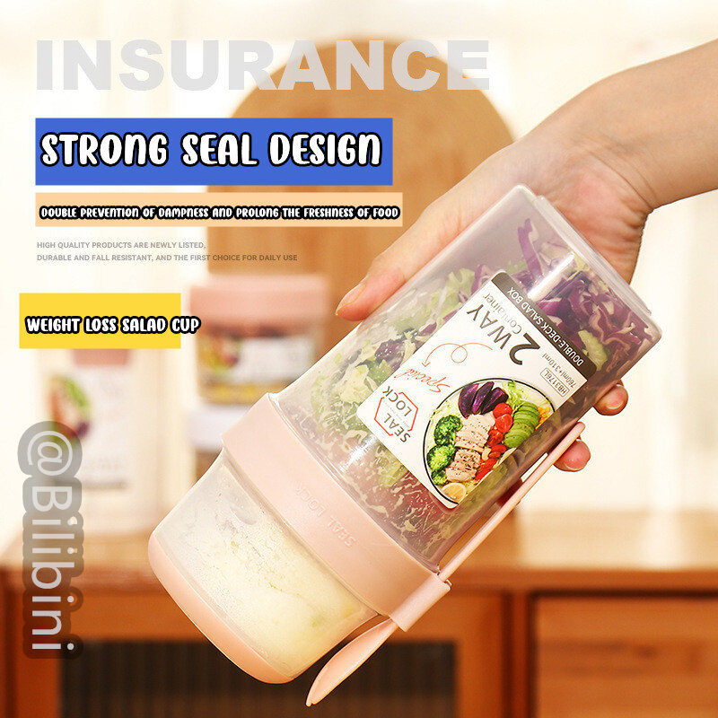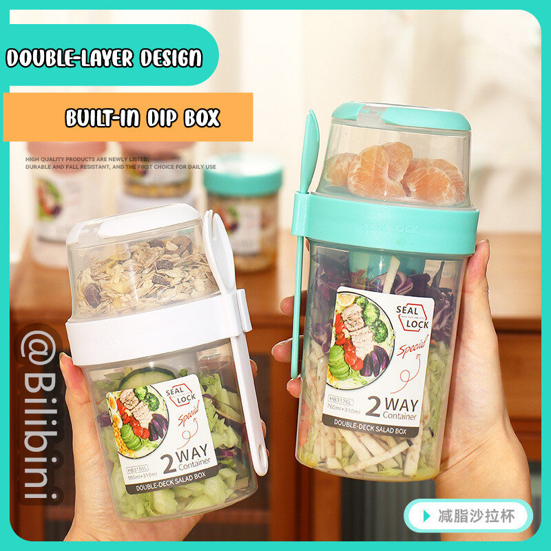 Bilibini With Spoon Lid With Fork Seal Portable Light Meal Double Layer Salad Cup