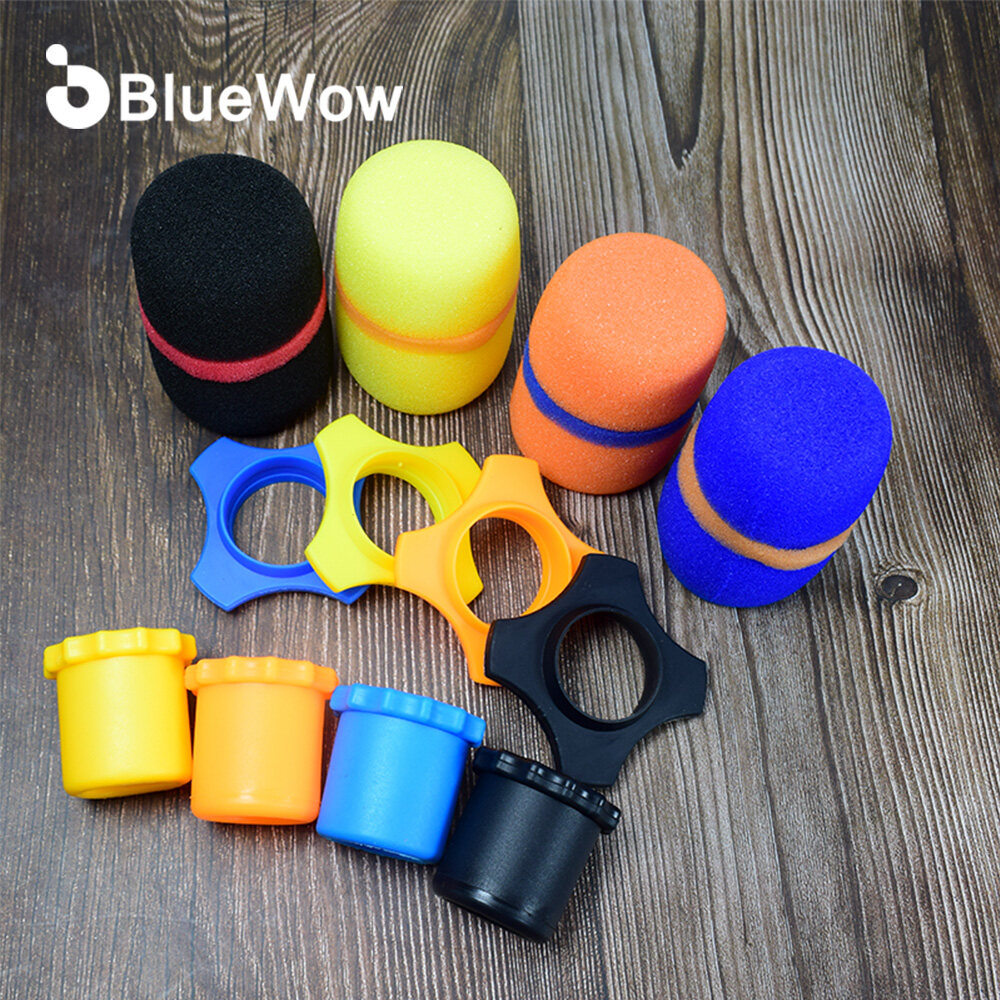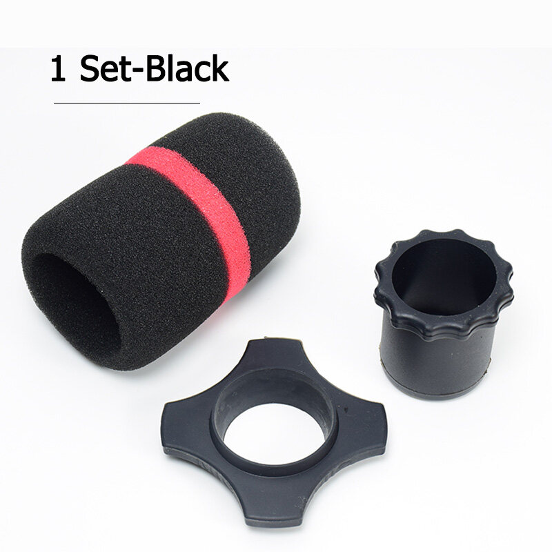 BlueWow Handheld Microphone Windscreen Foam Cover and Anti-Roll Device High-Density Mic Foam Anti-Rolling Mic Protection Silicone Ring Bottom Rod Sleeve Holder Set