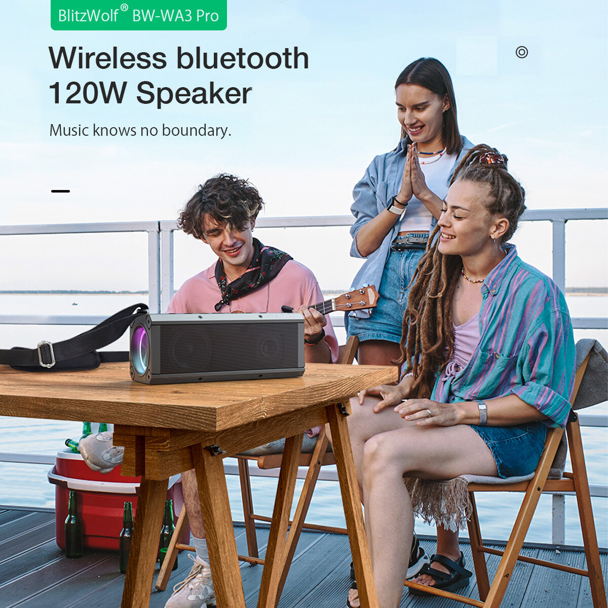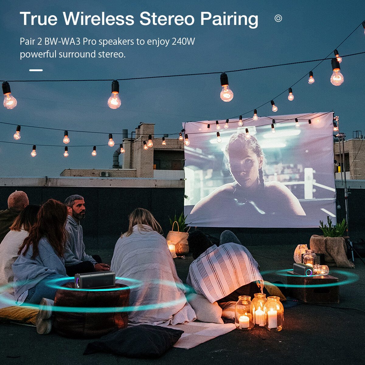 4. TWS Pairing, Stereo Sound-- Pair 2 BW-WA3 Pro speakers to enjoy 240W powerful surround stereo.