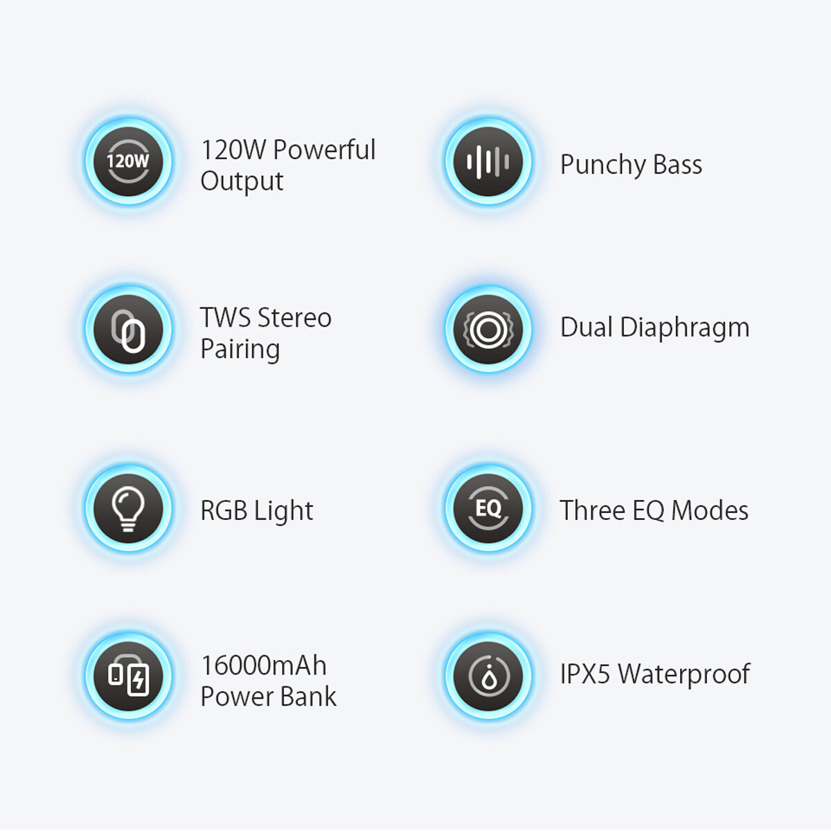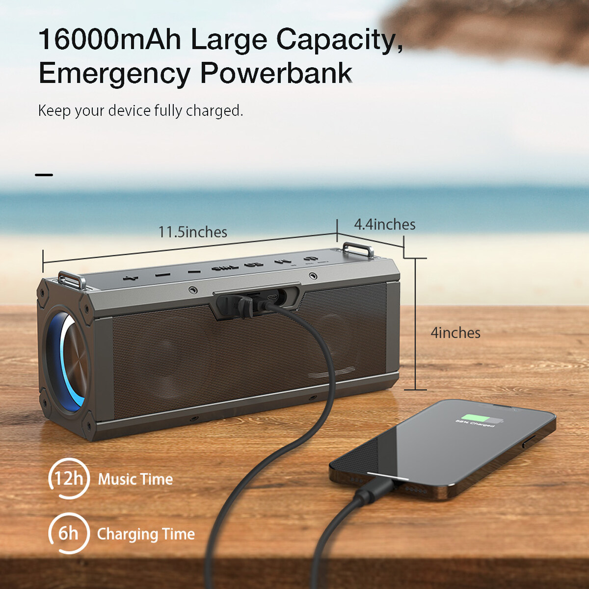 3. 16000mAh Long Endurance-- Long battery life and support USB emergency charging, long enough for any outdoor activities. Wireless portable bluetooth speakers should be a must have in your life.