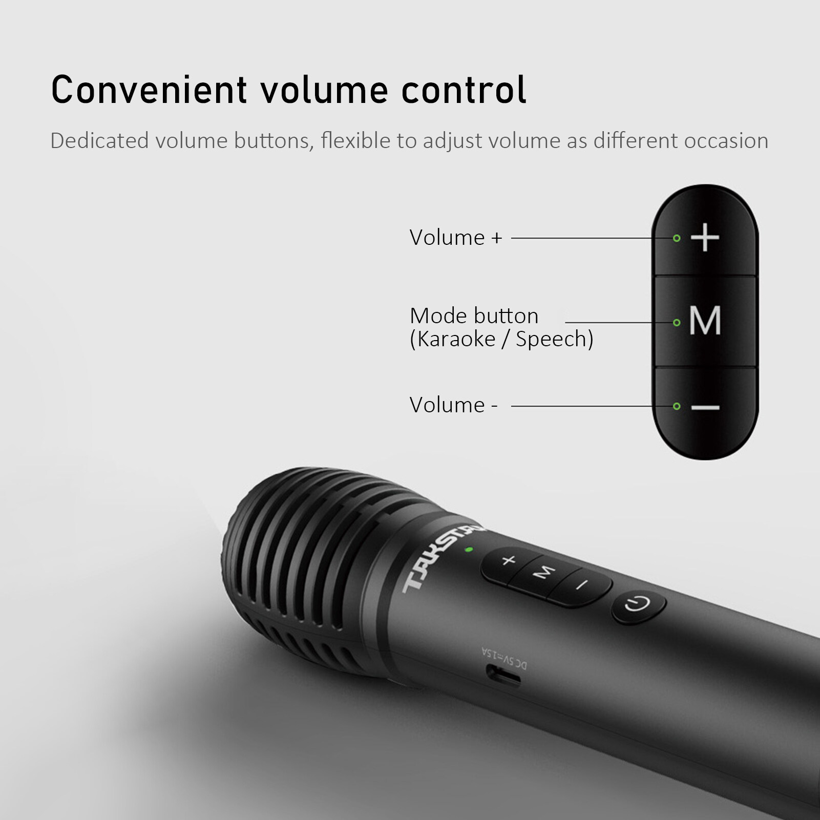One button to switch between speech mode and singing mode, easy operation; volume adjustment, convenient to control volume level as different venue.
