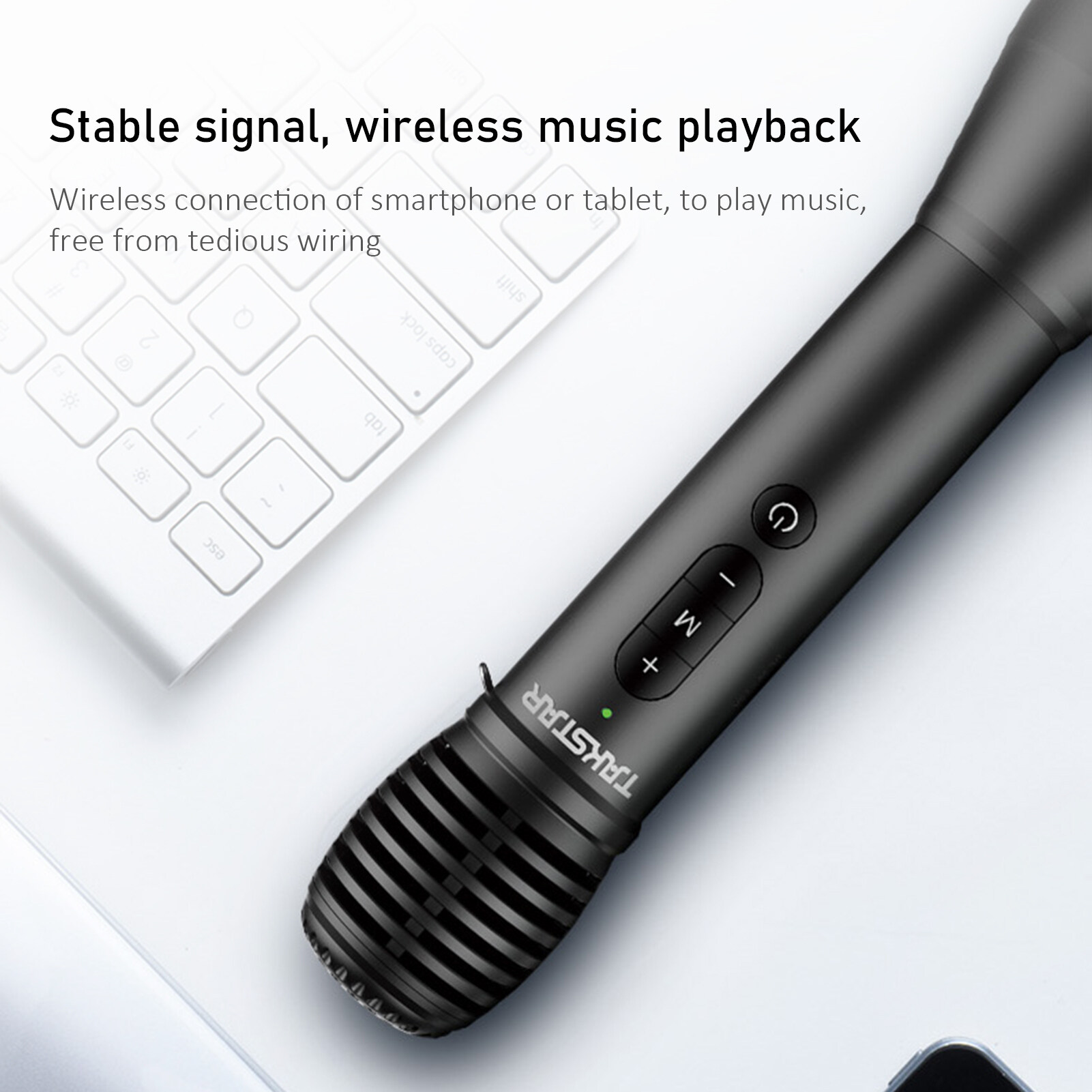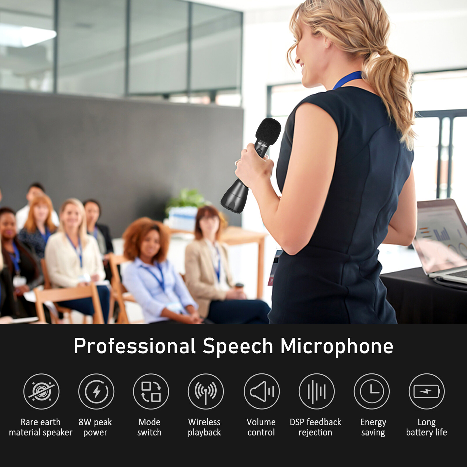 This microphone has light weight, compact size, comfortable holding, suitable for singing, teaching, speech, training, company meeting, etc.