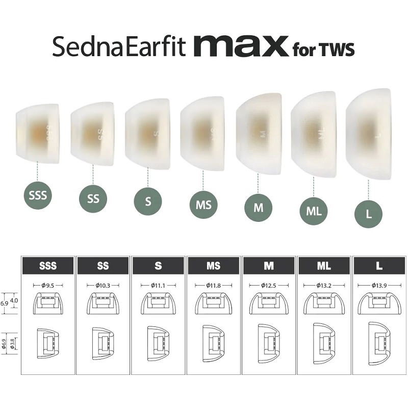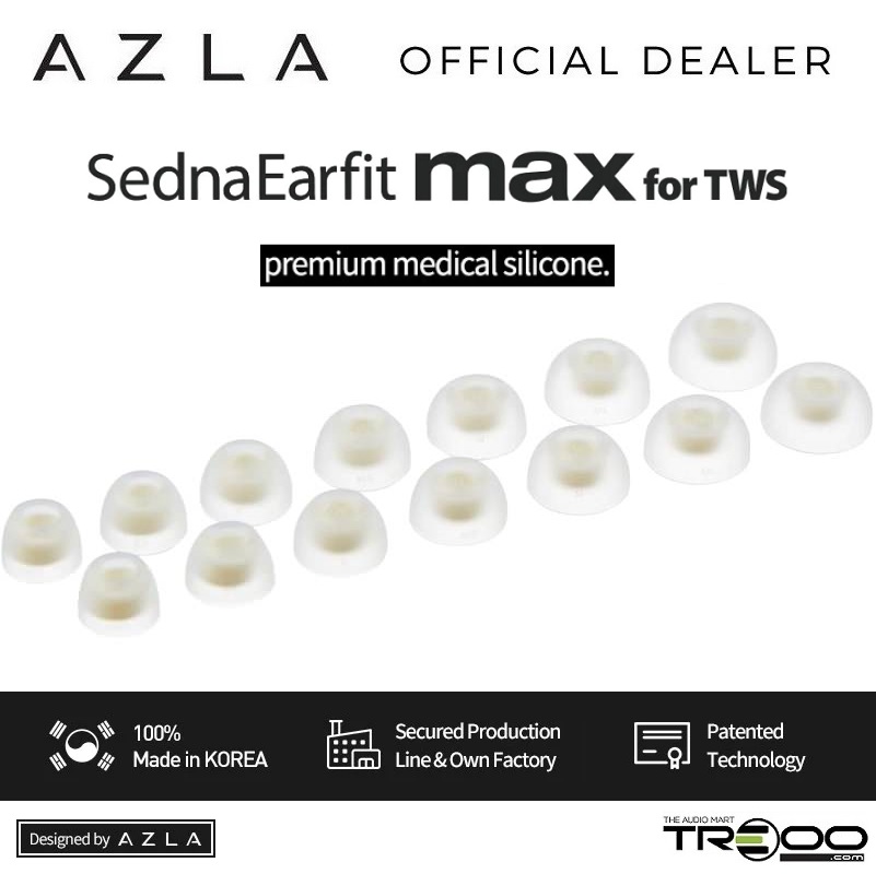 AZLA SednaEarfit MAX (for TWS) Medical Grade Silicone Eartips for True Wireless Earphones