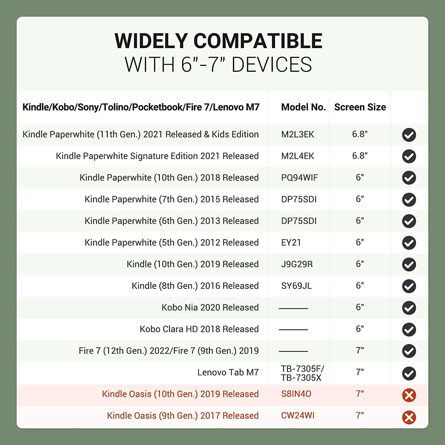Compatibility: Designed for 6 - 6.8" tablet only, such as 6-6.8" Kindle/Kobo/Voyaga/Sony E-book reader.