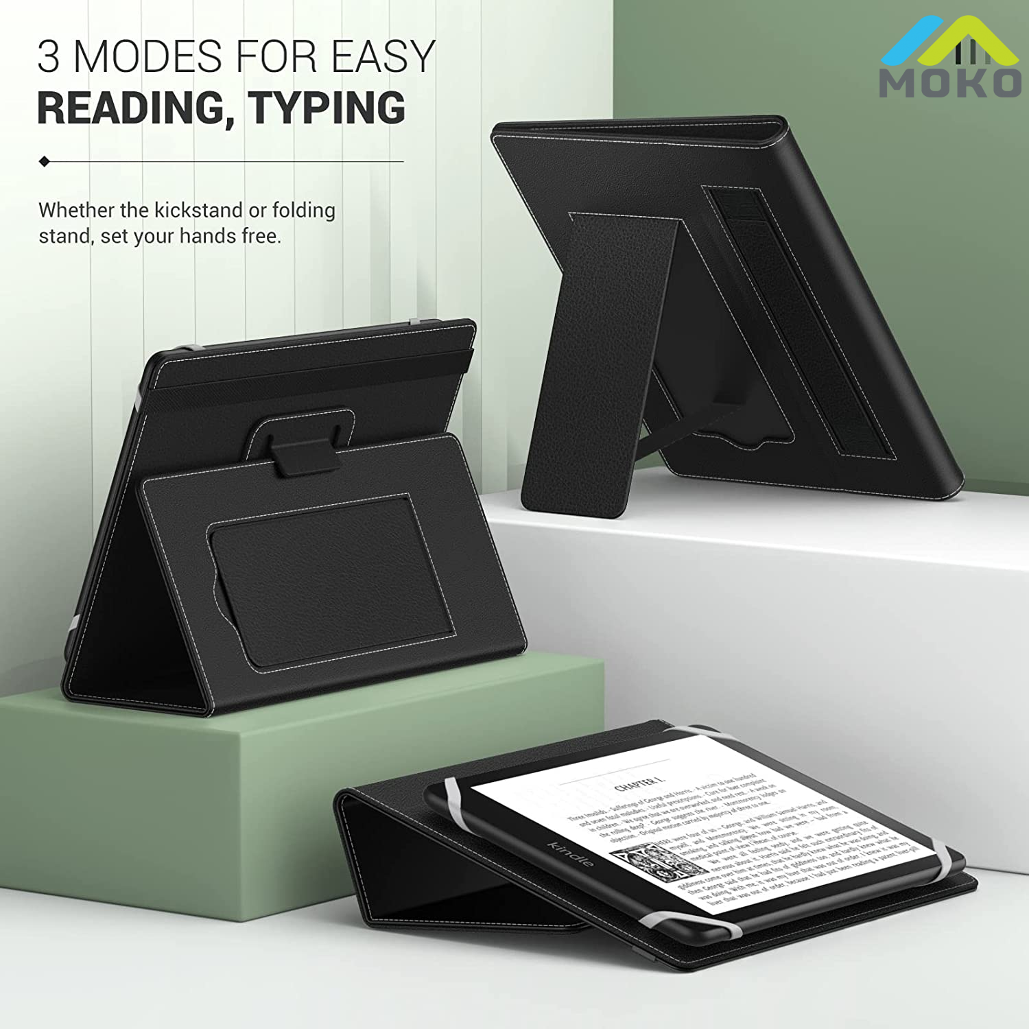 MoKo Universal Case for 6",6.8",7" Kindle eReaders Fire Tablet - Kindle/Kobo/Voyaga/Lenovo/Sony Kindle E-Book Tablet, Lightweight PU Leather Folio Shell Cover Case, with Hand Strap/Kickstand
