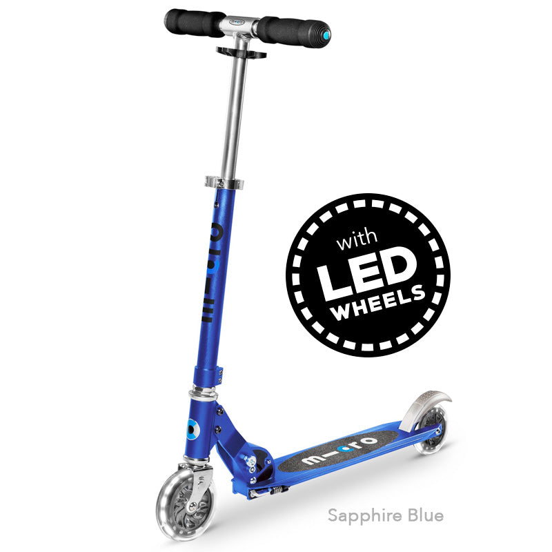 The Micro Sprite LED kick scooter shares all the same specs as the Micro Sprite. It is one of the most important and versatile model in Micro's range. This is because it is suitable for a very wide range for purposes and riders. It is excellent as the first two wheel kick scooter for a toddler who has outgrown (or outperformed)a three wheel kick scooters. And it is tough and practical enough to meet the needs of an adult up to 100kg in weight for the daily commute.