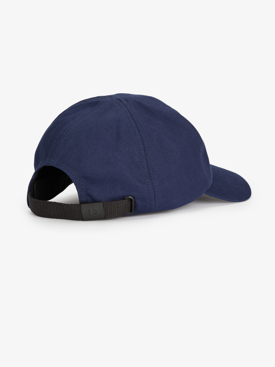 Textured cotton twill / Embroidered branding / Matte metal adjustor clip .